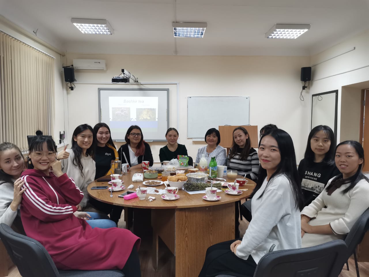 Рассказывали и пробовали китайскую и башкирскую национальную еду. Было интересно оценить блюда народа другой страны. В рамках встречи обсуждали, делились фактами о жизни в своей стране. Также обсуждали вопросы школьного образования в России и КНДР: расписание занятий, перечень дисциплин, форму школьников, средний возраст школьников, делились своими выпускными фотографиями.