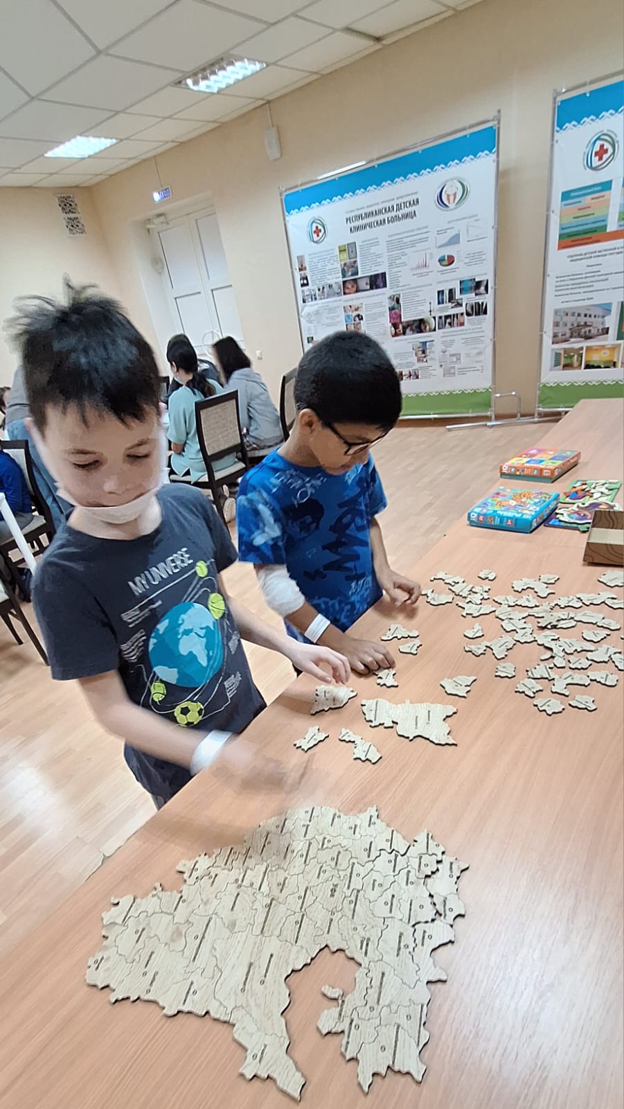 В рамках благотворительной программы "Территория здорового детства" 2 ноября 2024 г. старшие преподаватели кафедры экологии, географии и природопользования Роман Халитов, Галия Мухаметова и студентка 2 курса Алия Дмитриева посетили Республиканскую детскую клиническую больницу. Для маленьких пациентов и их родителей они продемонстрировали коллекцию геологических образцов, дети смогли узнать много нового об окружающем мире. Роман Маратович рассказал им о различных минералах и их свойствах, каждый ребенок смог подержать камни в руках и рассмотреть их. По предложению  Галии Миниахметовны родители с удовольствием собирали карту-пазл Республики Башкортостан. «Мы очень рады, что смогли порадовать детей и сделать их день немного ярче, – поделилась Алия студентка естественно-географического факультета. – Для нас важно не только делиться знаниями, но и поддерживать тех, кто нуждается в помощи».