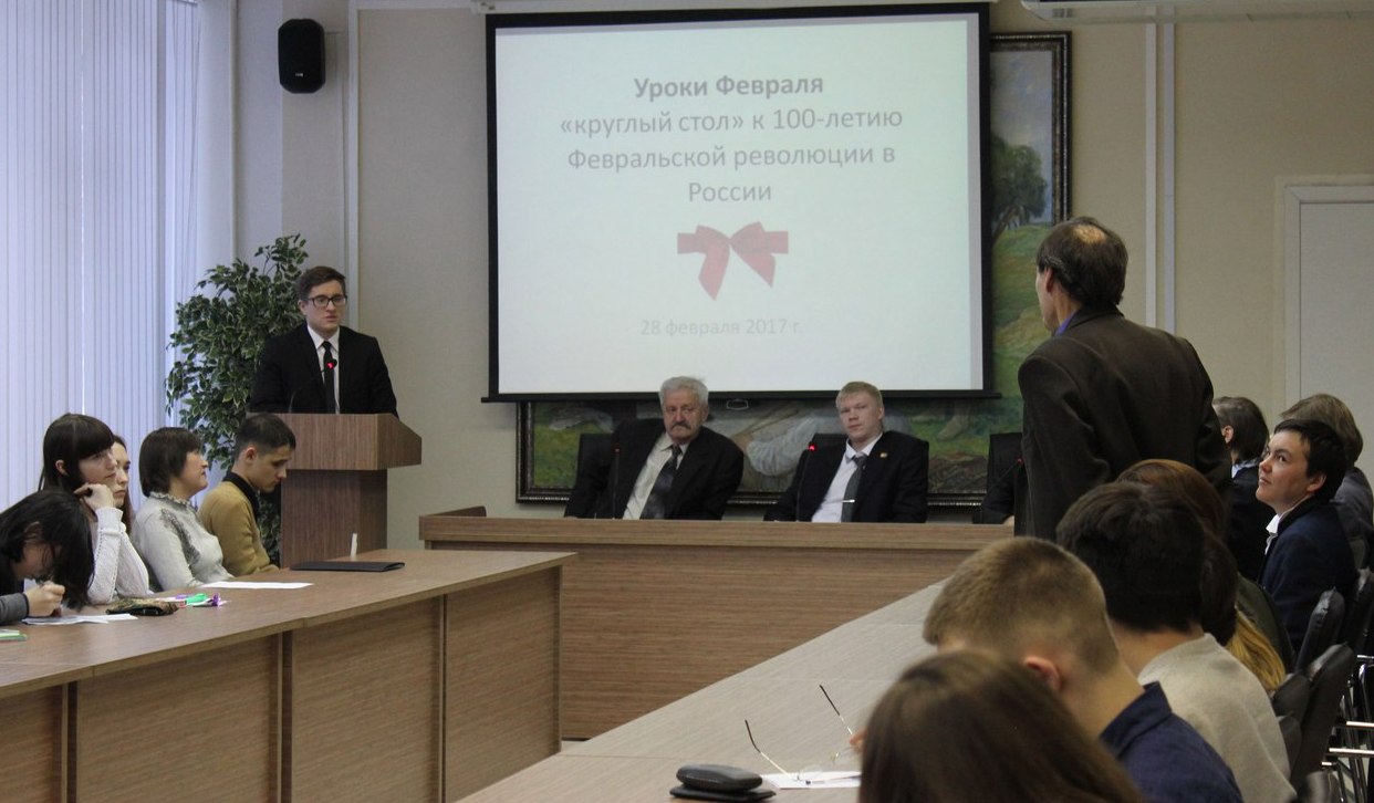 28 февраля 2017 г. в Центральном читальном зале состоялся круглый стол «Уроки Февраля», приуроченный к 100-летию Февральской революции. Мероприятие было организованно библиотекой совместно с Институтом исторического и правового образования, Институтом филологического образования и межкультурных коммуникаций, Социально-гуманитарным факультетом. Участниками круглого стола стали 76 студентов 1-5 курсов, а также преподаватели кафедр Отечественной и всеобщей истории, а также кафедры философии, социологии и политологии нашего вуза и сотрудница Национальной библиотеки РБ им. А.-З. Валиди. Мероприятие вели сотрудники библиотеки БГПУ Алексей Иванов и Пётр Фёдоров.