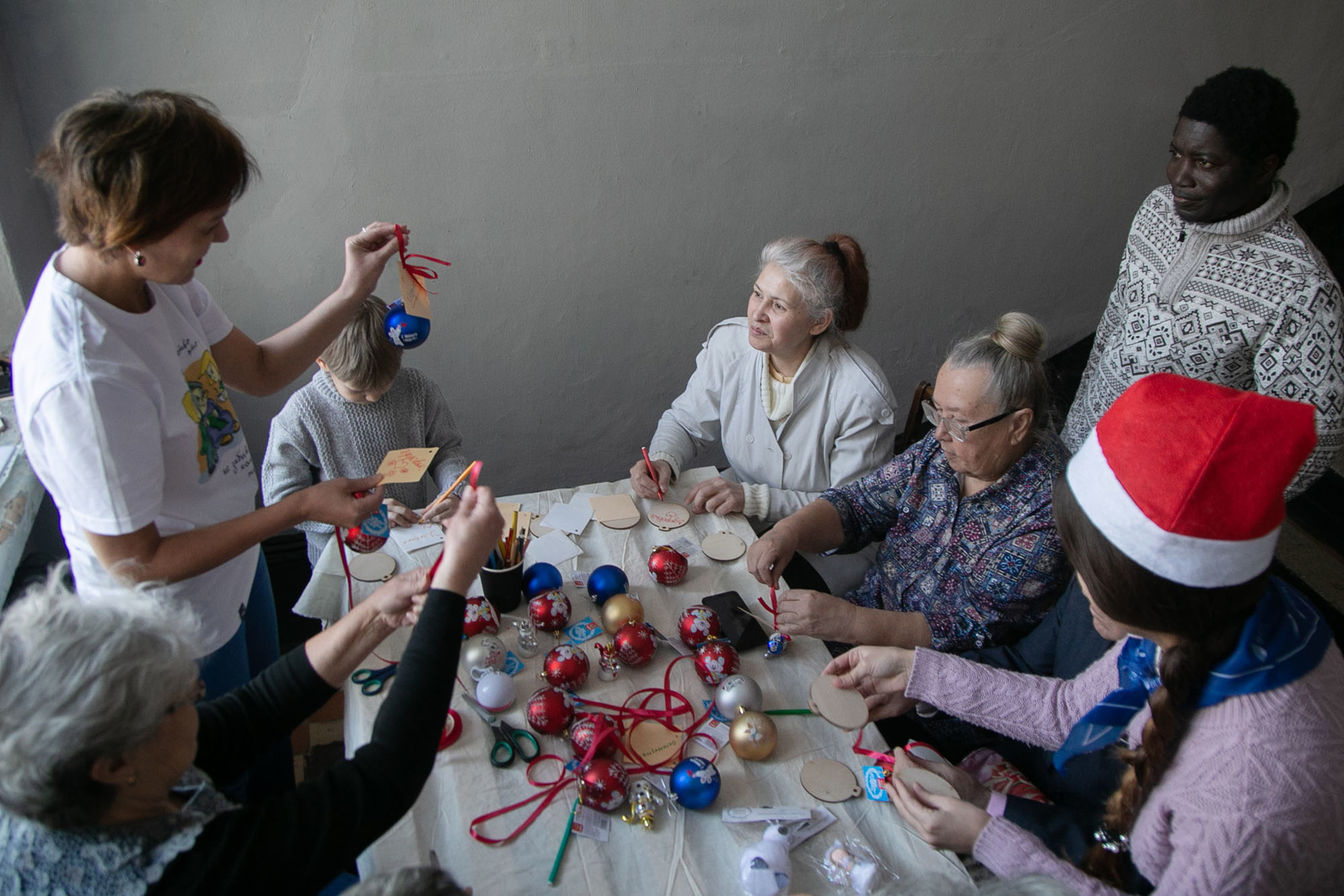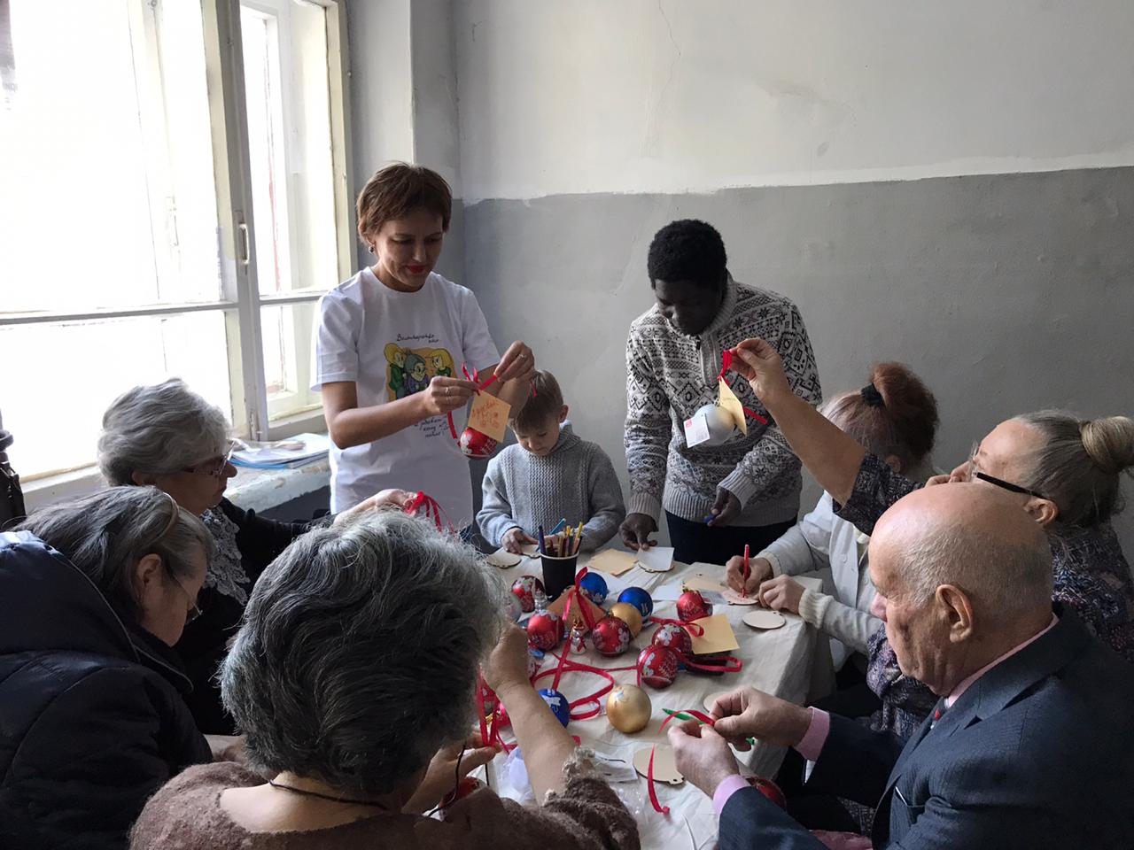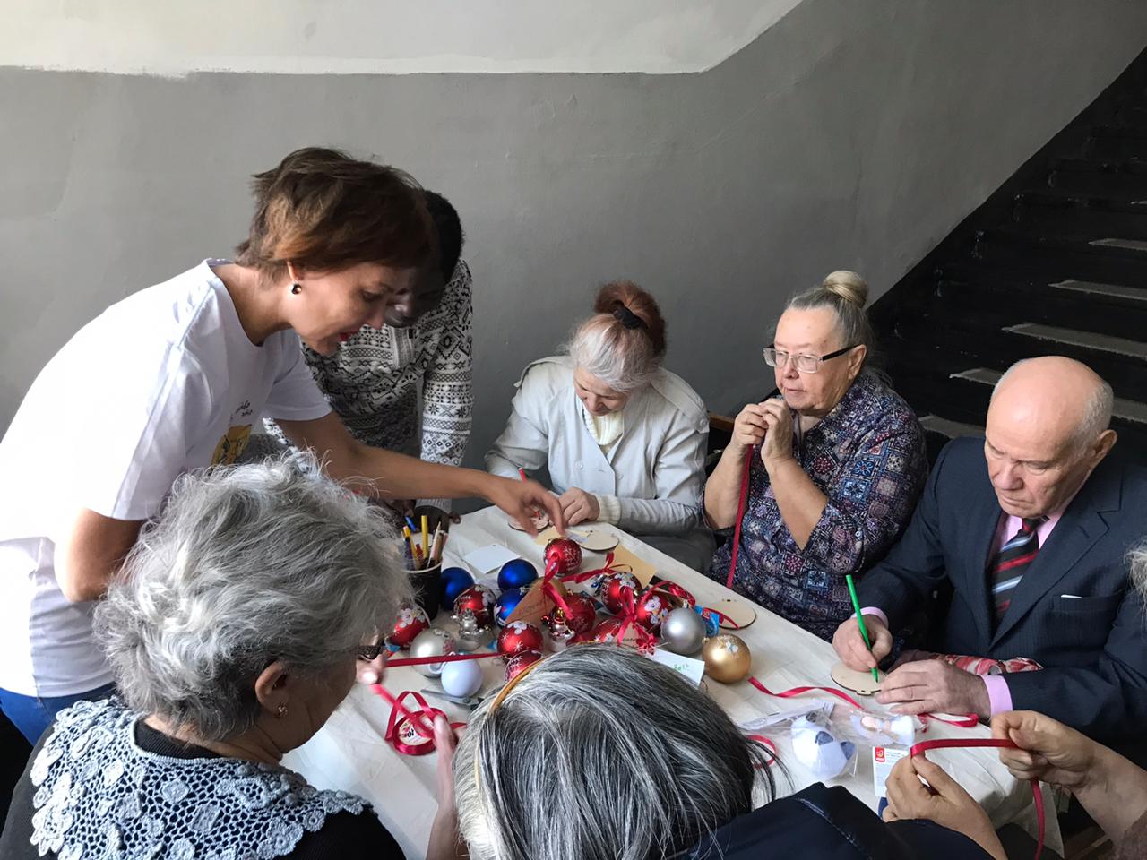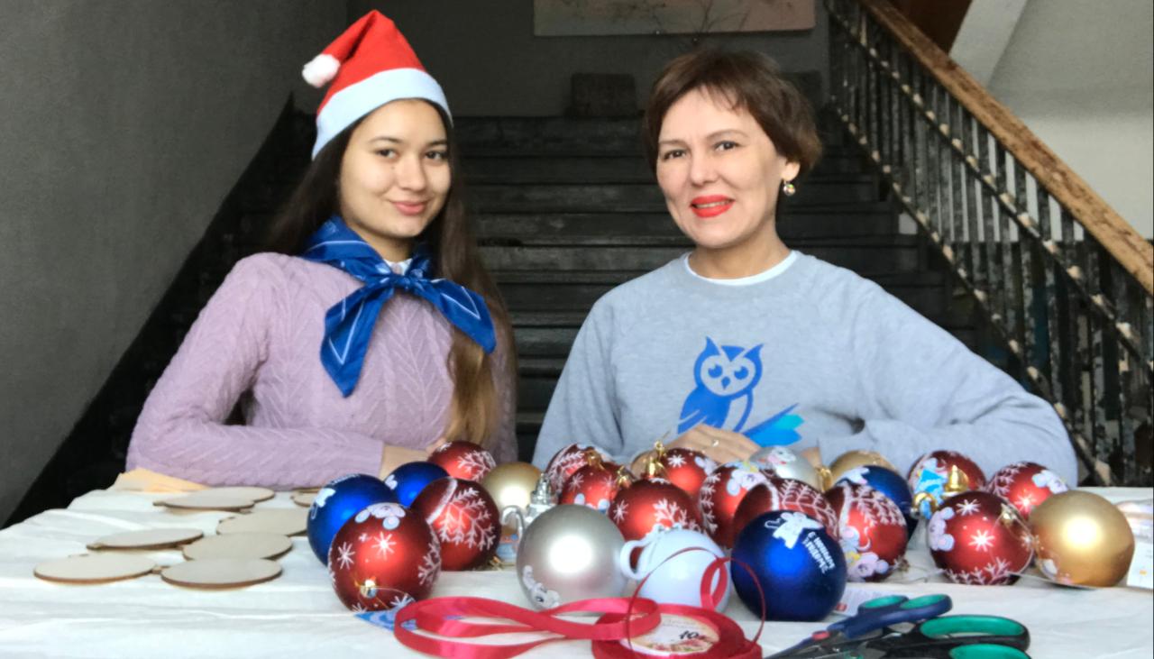 Новогодние игрушки на ёлку собрали студенты Института педагогики БГПУ им. М. Акмуллы (1-4 курсы направлений «Начальное образование» и «Специальное дефектологическое образование»). «Серебряные» волонтеры - представители республиканского социального инклюзивного проекта Университет поколений «Канглы» (руководитель Гульнара Валеахметова) под руководством куратора «серебряных» добровольцев Башкортостана, доцента кафедры теорий и методик начального образования БГПУ им. М. Акмуллы Екатерины Савельевой и волонтер студенческого отряда «Палитра», студентка 4 курса направления "Начальное образование" Диана Акбутина написали добрые пожелания, повязали игрушки алыми ленточками и поздравили гостей праздника.