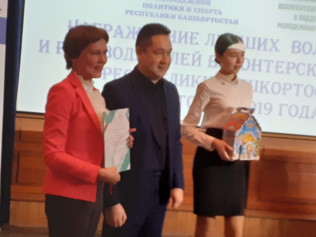 27 декабря 2019 года состоялось награждение лучших волонтеров и руководителей волонтерских центров Республики Башкортостан. Организаторы мероприятия – Министерство молодежной политики и спорта РБ и Ресурсный центр по развитию добровольчества РБ.