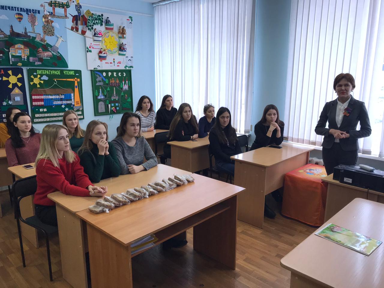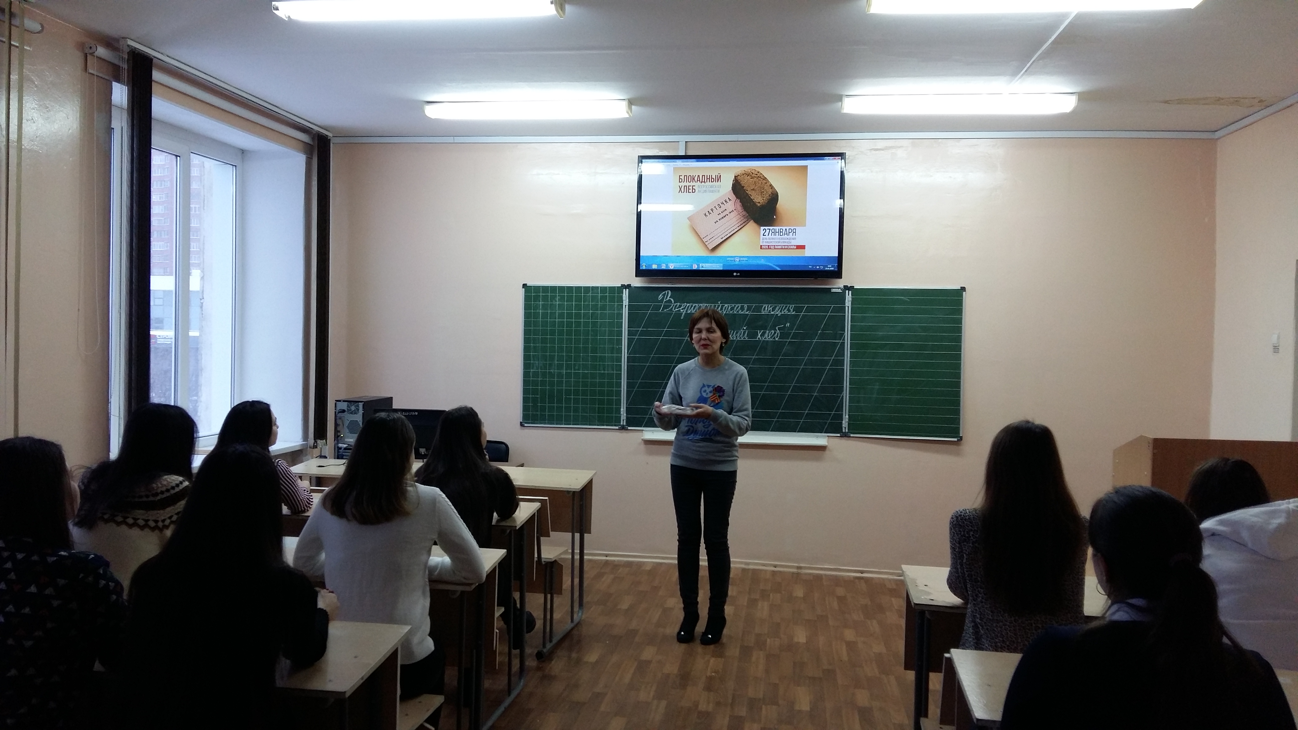 23  и 25 января 2020 года к.п.н., доц. кафедры ТиМНО ФГБОУ ВО "БГПУ им. М. Акмуллы", «серебряный» волонтер Екатерина Савельева познакомила студентов Института педагогики – первокурсников ИП (направления «Специальное дефектологическое образование», "Начальное образование", "Дошкольное образование") и студентов 4 курса направления «Начальное образование» с историческими фактами о блокаде Ленинграда. В акции приняло участие 72 студента.