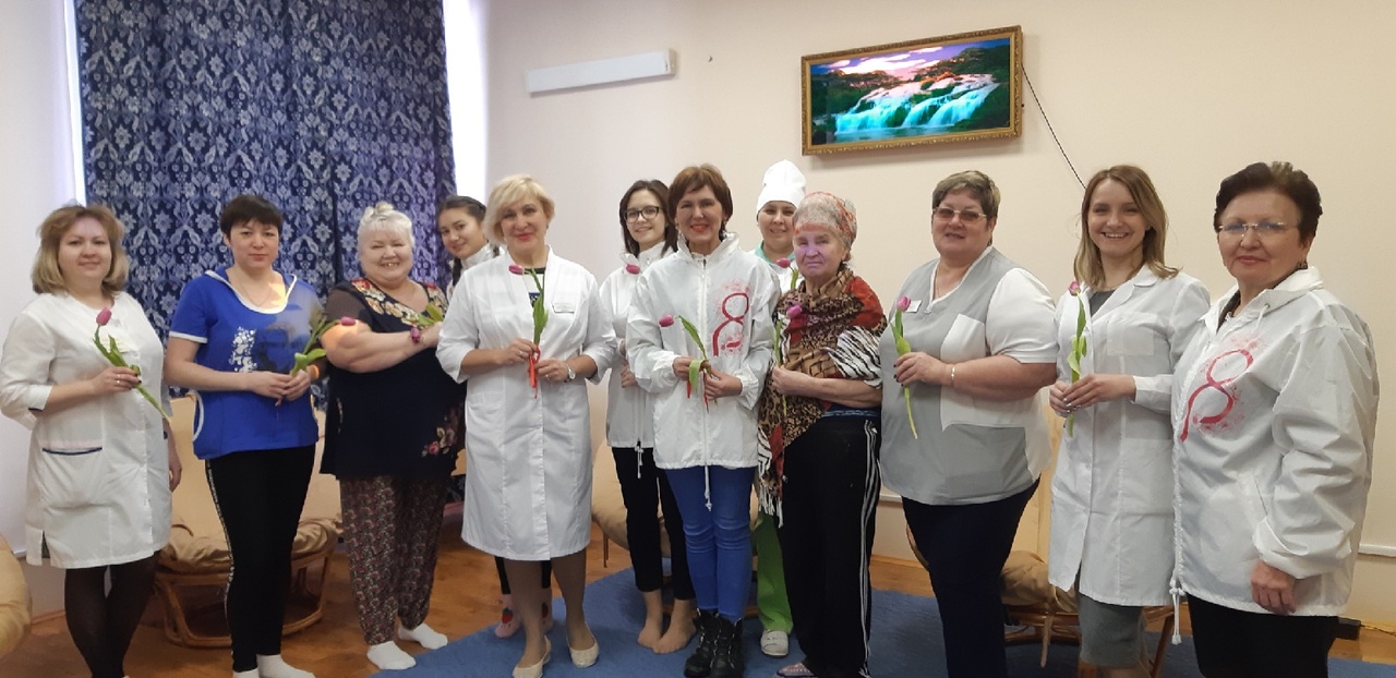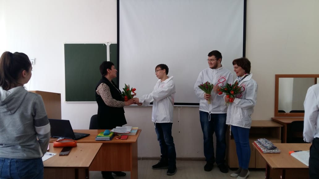 Это были необыкновенно теплые и радостные дни! Волонтеры поздравляли милых дам букетами ярко-алых, рубиново-красных и белых тюльпанов. Вокруг была теплая атмосфера и от этого на сердце у всех было очень радостно!