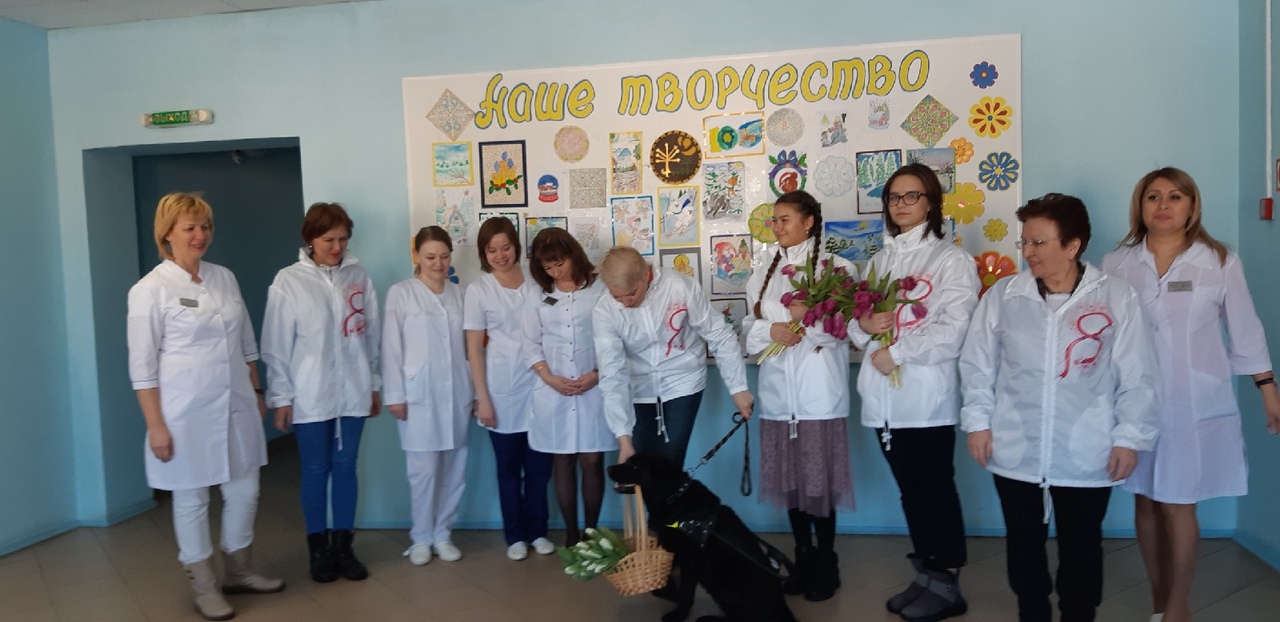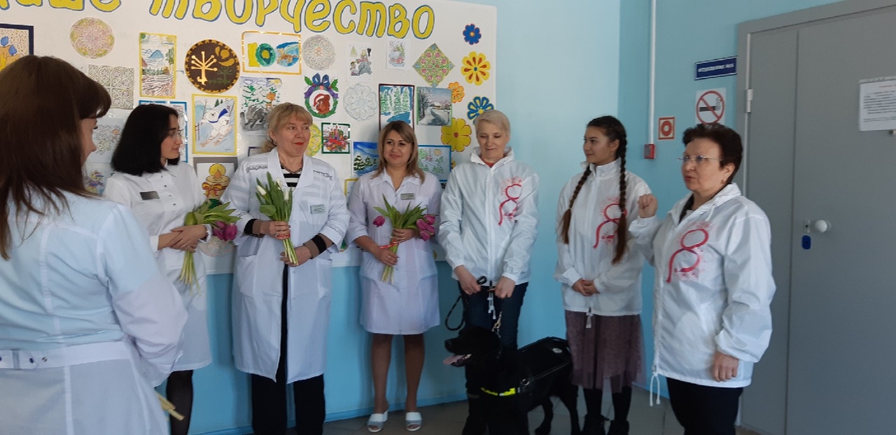 7 и 8 марта 2020 года волонтеры отряда «Палитра», студенты направления «Начальное образование» БГПУ им. М. Акмуллы Егор Гришин, Диана Акбутина, Александра Макаренко и  «серебряные» волонтеры Башкортостана Екатерина Савельева и Гузель Хасанова совместно с доцентом БГПУ им. М. Акмуллы Александром Кобысканом поздравили представительниц прекрасного пола – преподавателей и студенток Башкирского государственного педагогического университета им. М. Акмуллы, а также более 220 женщин  - сотрудников и пациентов Республиканской клинической психиатрической больницы с Международным женским днем, в рамках Всероссийской акции «Вам любимые»,  и подарили главный символ праздника - тюльпаны. Особенностью мероприятия стало и то, что в поздравлении медперсонала Республиканской клинической психиатрической больницы приняла участие собака-поводырь Андора с корзиной тюльпанов, под руководством Гузель Хасановой