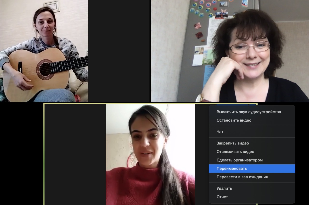 Такие возможности, как совместное использование демонстрации экрана, возможность записи занятия, наличие сессионных залов делают более привлекательным именно эту платформу. Естественно, есть некоторые проблемы со звучанием при исполнении произведений, так как технические характеристики ноутбуков и компьютеров у всех участников разные, как и скорости Мбит/с, количество домашних активных пользователей. У многих нет музыкального инструмента дома, чтобы проиграть мелодию. Хотя им и выслали аудиозаписи их произведений для домашних репетиций, этого недостаточно. Необходимо проигрывать, «чистить» произведение. Наш концертмейстер Анна Анатольевна начала осваивать гитару из-за отсутствия другого инструмента. «Визуальное» общение, оценивание действий в режиме реального времени, советы, совместные просмотры с отзывами придают урокам «живость», улучшают психо-эмоциональный настрой участников конференции. Это подтверждают многочисленные отзывы студентов: