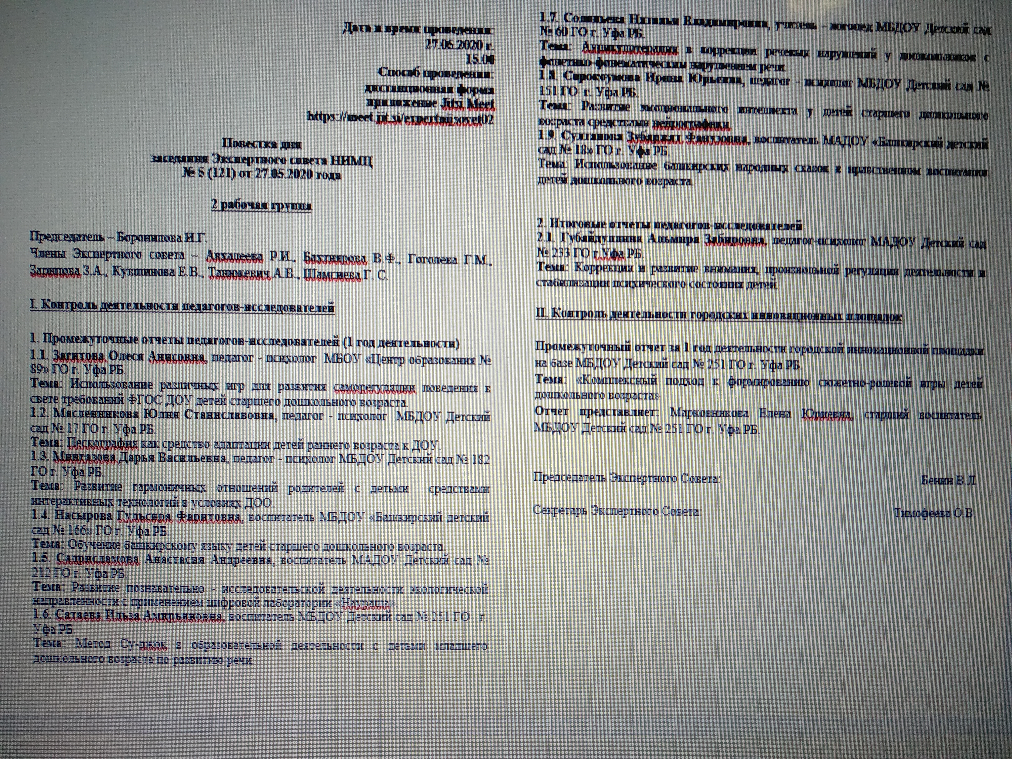 27 мая 2020 г. состоялось итоговое в текущем учебном году заседание  Экспертного совета НИМЦ г. Уфы.