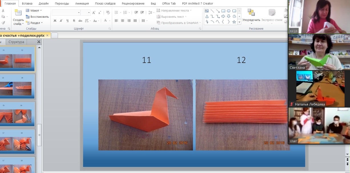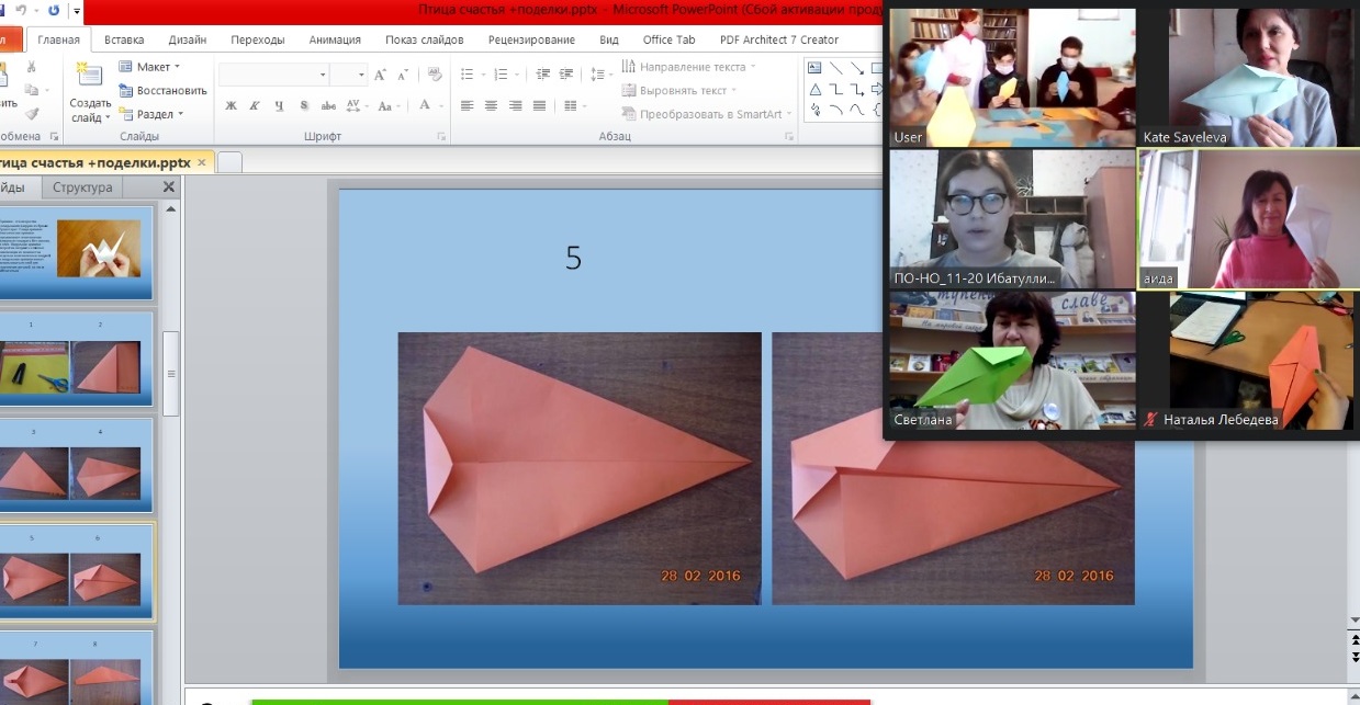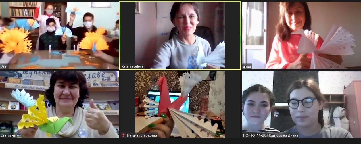 21 февраля 2021 года для маленьких пациентов Республиканской клинической психиатрической больницы волонтеры отряда «Палитра», студенты 1 курса направления «Начальное образование» БГПУ им. М. Акмуллы Диана Ибатуллина и Наталья Лебедева совместно с «серебряными» волонтерами Башкортостана: доц. кафедры ТиМНО, руководителем студенческого волонтерского отряда «Палитра» ИП БГПУ им. М. Акмуллы Екатериной Савельевой, заведующей сектором эстетического воспитания Центральной городской детской библиотеки им. Ш. Худайбердина Светланой Ермаковой и Аидой Рафиковой провели творческое занятие онлайн «Птица счастья». Волонтеры с помощью презентации познакомили участников мероприятия с историей появления птицы счастья, рассказали, что она приносит счастье, добро, здоровье и научили в технике оригами складывать поделку.