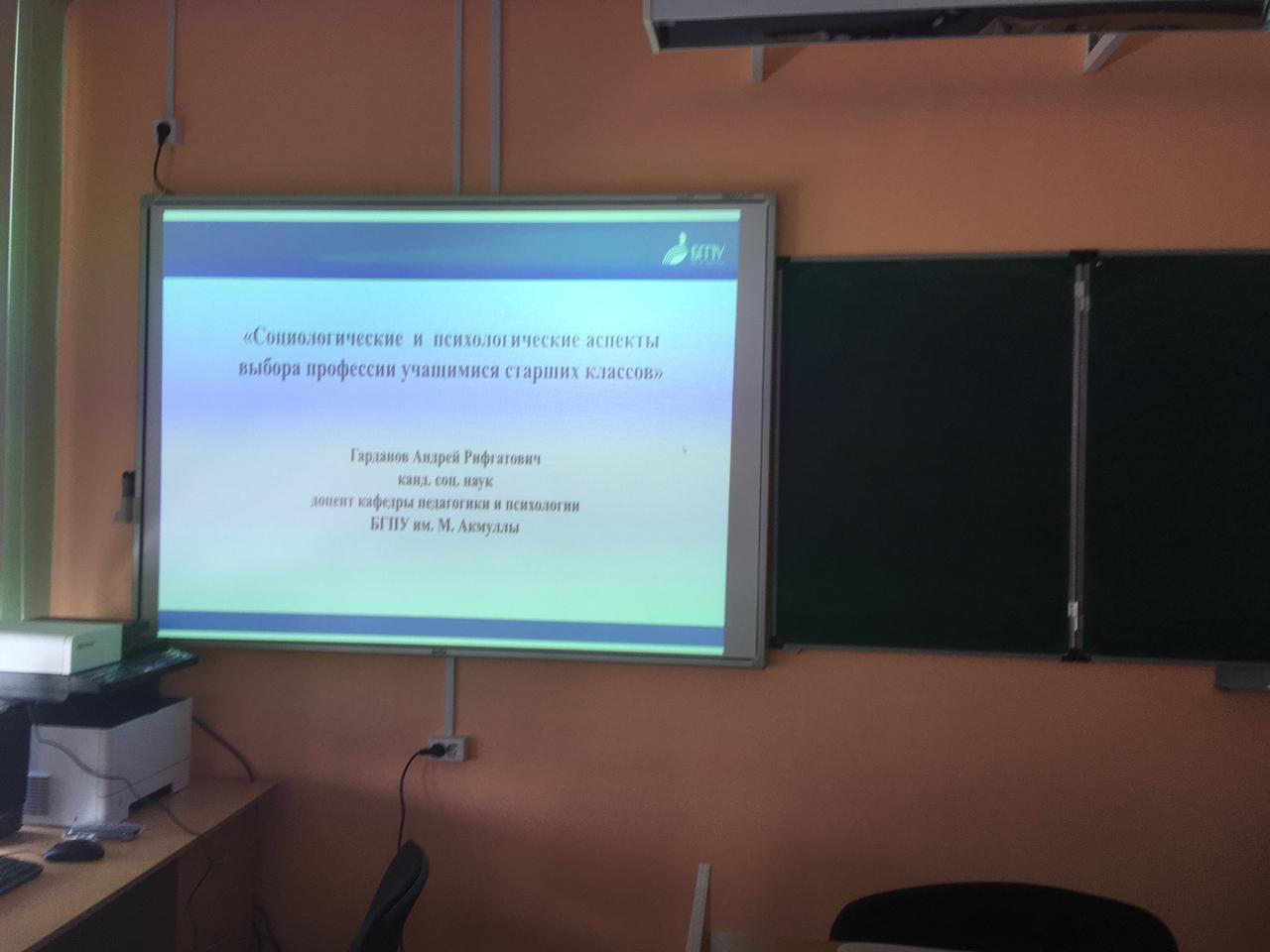 В рамках профориентационной работы кафедры педагогики и психологии 24 февраля на базе МБОУ СОШ №131 г.Уфы было проведена золотая лекция для учащихся 10-11 классов по теме «Социологические и психологические аспекты выбора профессии учащимися старших классов». Доцент кафедры педагогики и психологии Гарданов А. Р. представил некоторые статистические данные по рынку труда,   современные тенденции развития профессиональной структуры общества, рассказал о роли педагогической профессии в современном мире, а также дал практические рекомендации по выбору профессии в соответствии с психологическими особенностями и типом  личности  выпускника. Старшеклассники с интересом ознакомились с основными направлениями подготовки нашего ВУЗа в целом и Института педагогики в частности.