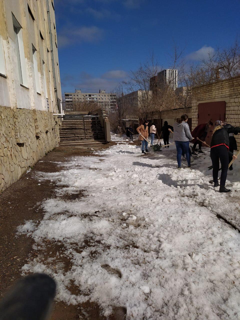 10 апреля, состоялся первый субботник  по очистке и благоустройству территории нашего 5 корпуса, где студенты, преподаватели и администрация 5 корпуса вместе убирали мусор, раскидывали снег, приводили в порядок территорию.