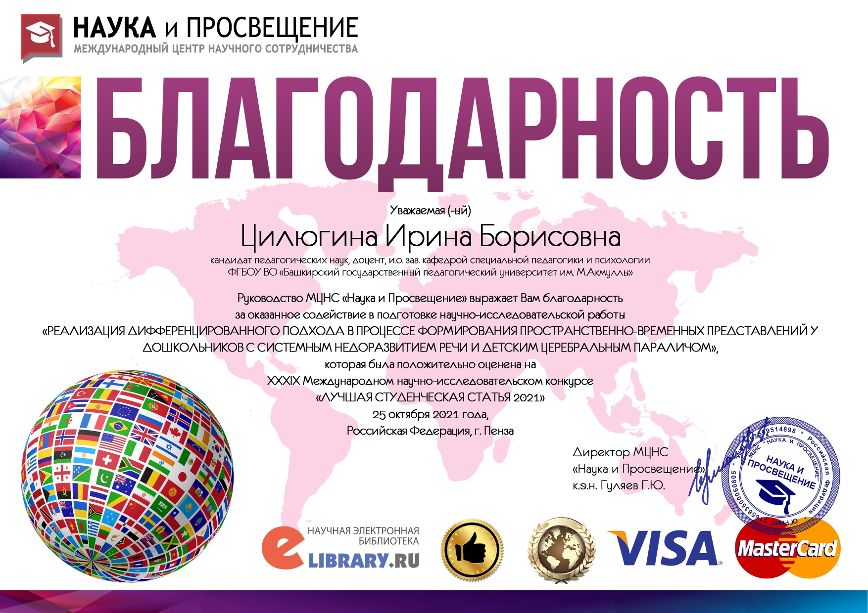 Магистрант кафедры специальной педагогики и психологии - победитель XXXIX Международного научно-исследовательского конкурса «Лучшая студенческая статья 2021»
