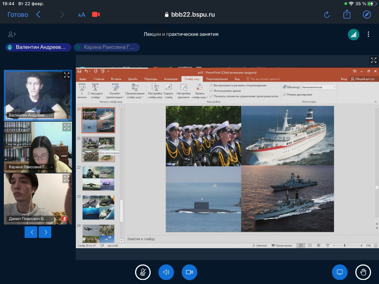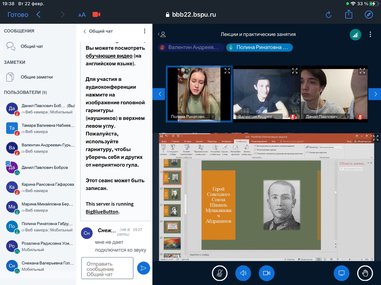 22 февраля 2021 года доцент кафедры педагогики Набиева Т.В. и студенты 4 курса ИФМЦН ггруппы ПОМ_ФИЗ 41-18 провели мероприятие по патриотическому воспитанию «К подвигу солдата сердцем прикоснись». Данное мероприятие было посвящено Дню защитников Отечества и направлено на   формирование чувства патриотизма у студентов, расширение знаний об истории праздника, развитие интереса к изучению истории Отечества. Студенты   узнали историю создания праздника, вспомнили героев, исторические факты, благодаря которым мы по сей день отмечаем этот праздник, а так же приняли активное участие в обсуждении вопросов организации патриотического воспитания в современной школе.