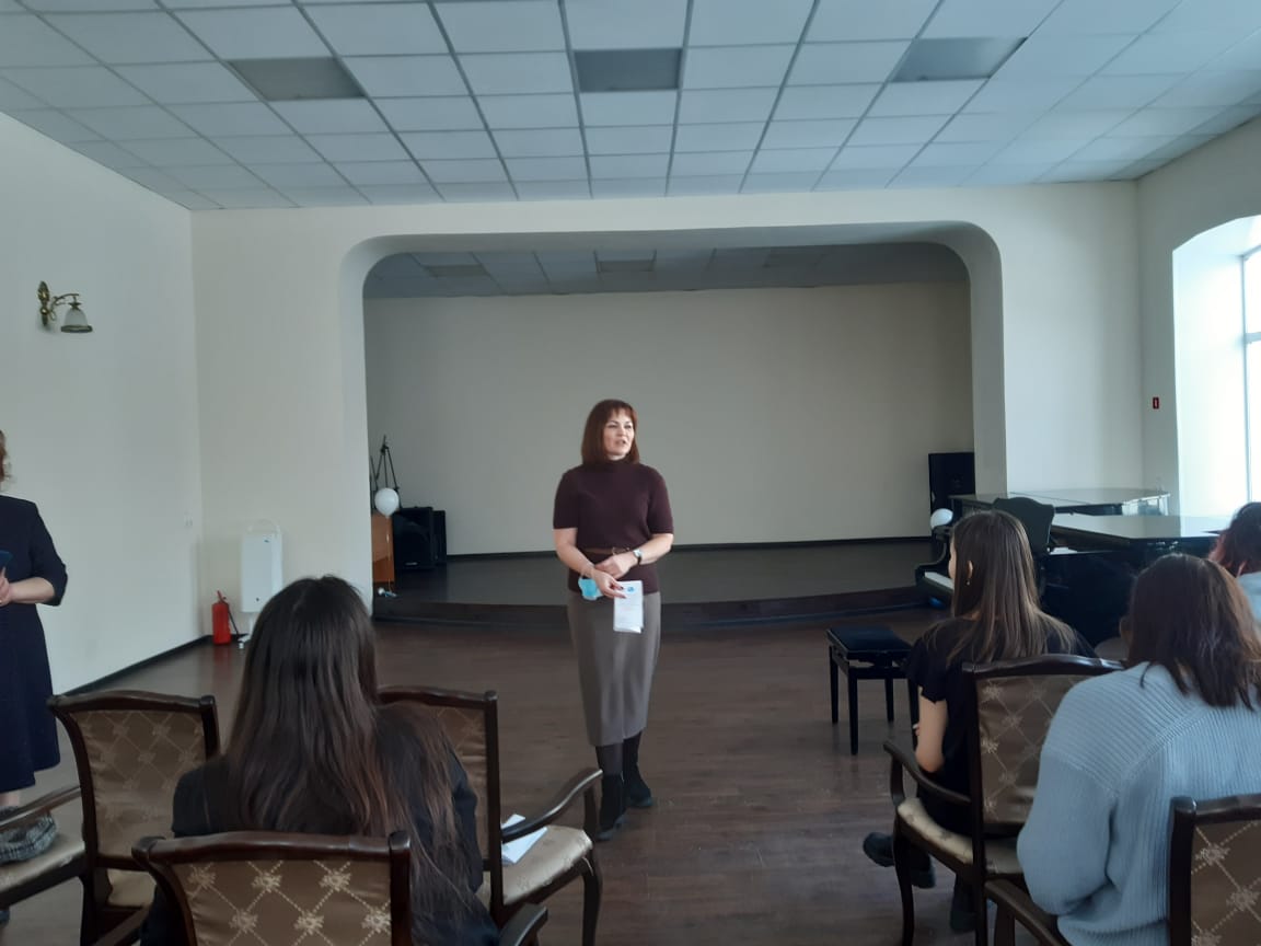 3 марта 2022 года в рамках программы образовательно-просветительского проекта прошла встреча - профориентационное мероприятие от кафедры музыкального и хореографического образования на базе Колледжа БГПУ им. М. Акмуллы. В ходе мероприятия заведующий кафедры МХО, кандидат педагогических наук, доцент Политаева Татьяна Ивановна представила информацию о направлениях подготовки кафедры, об условиях поступления, о вступительных испытаниях требованиях по ним, о сроках подачи документов.