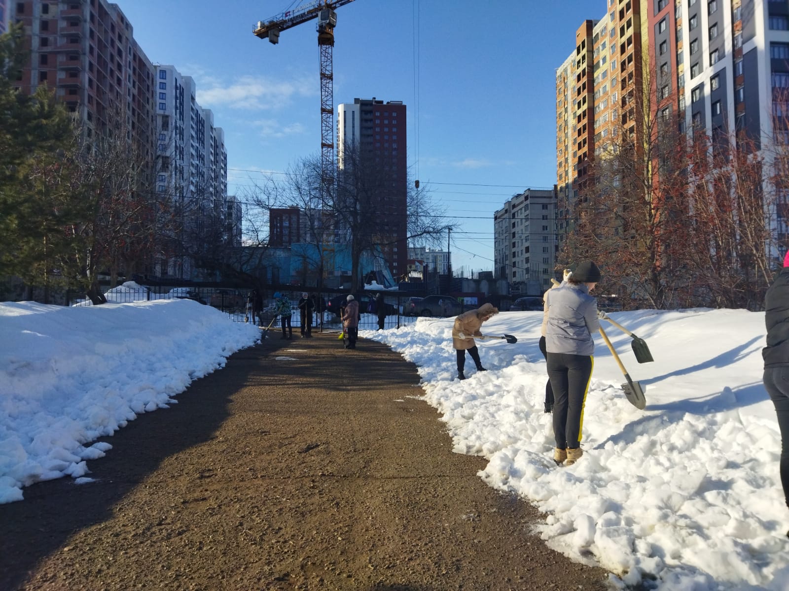 26 марта 2022 г. студенты 1 курса Института педагогики участвуют в общегородском субботнике по санитарной очистке, благоустройству и озеленению территории.