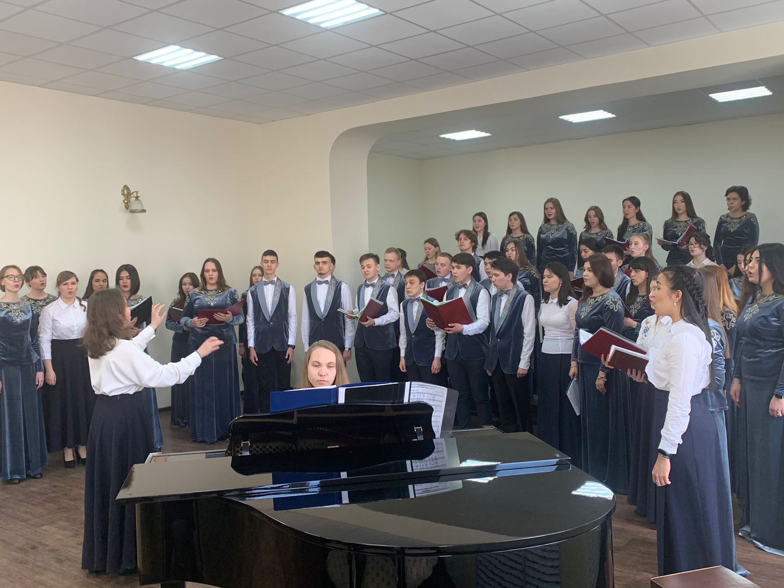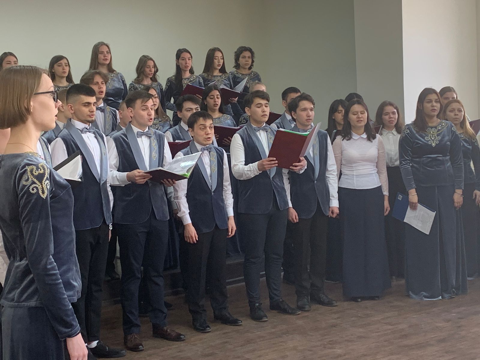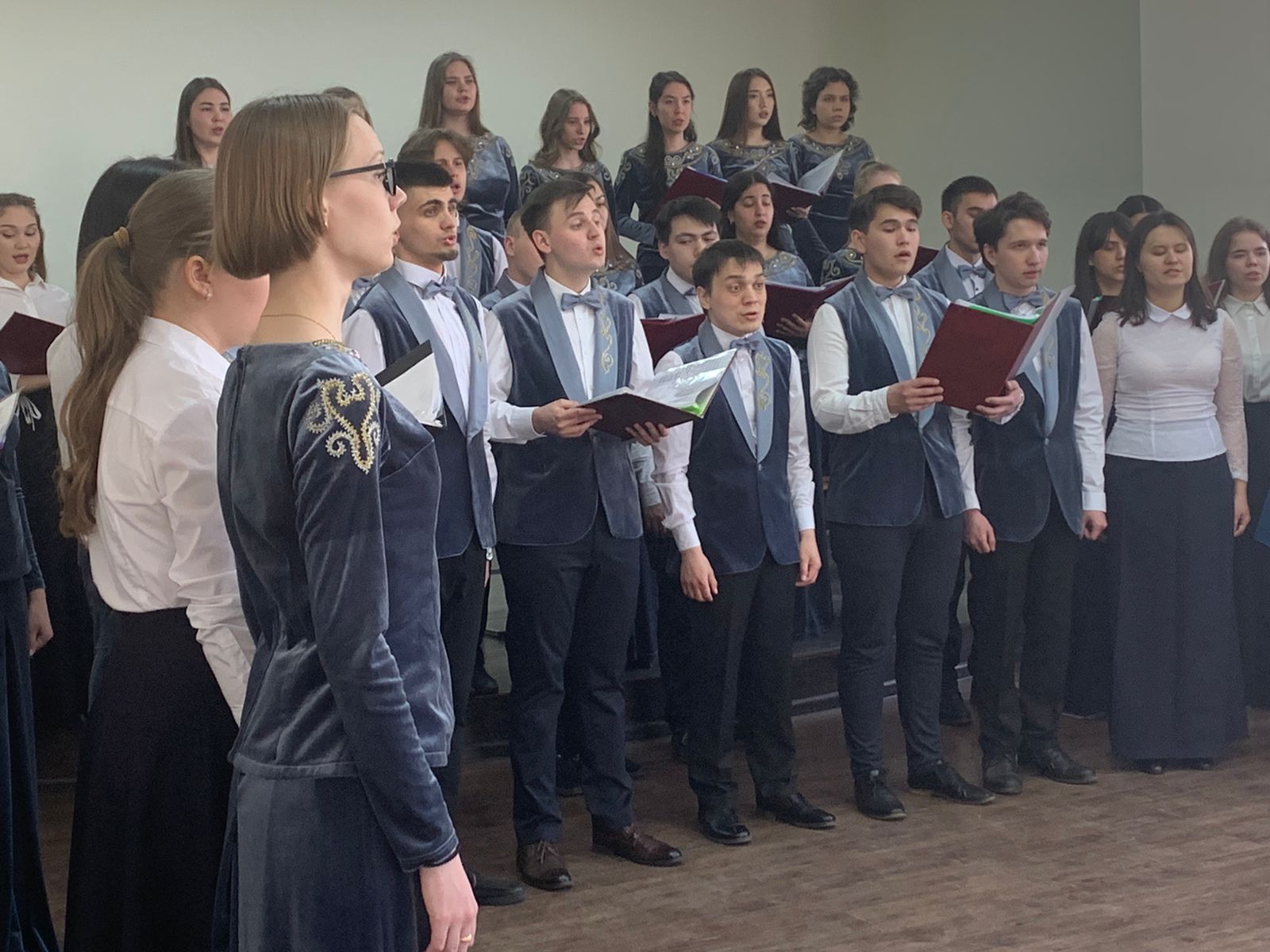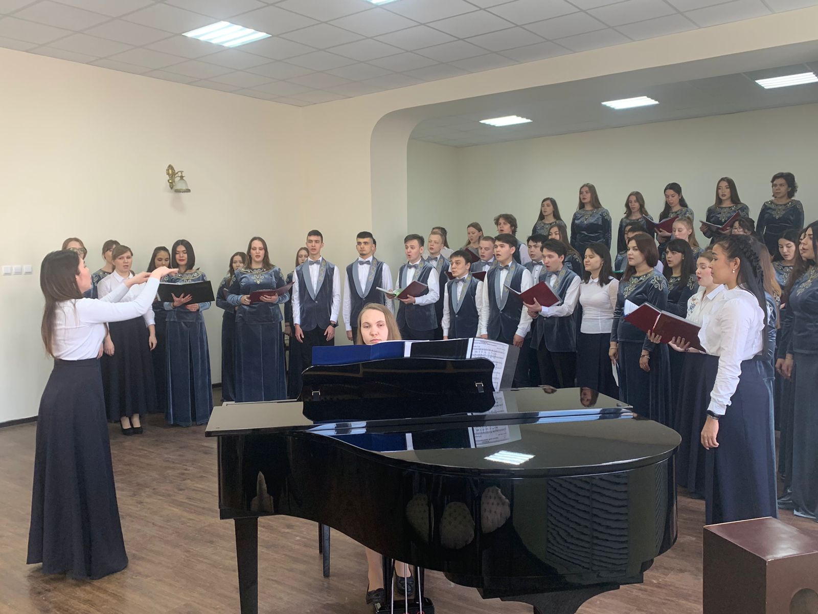 Хором дирижировали студенты выпускных курсов музыкального отделения кафедры МХО.