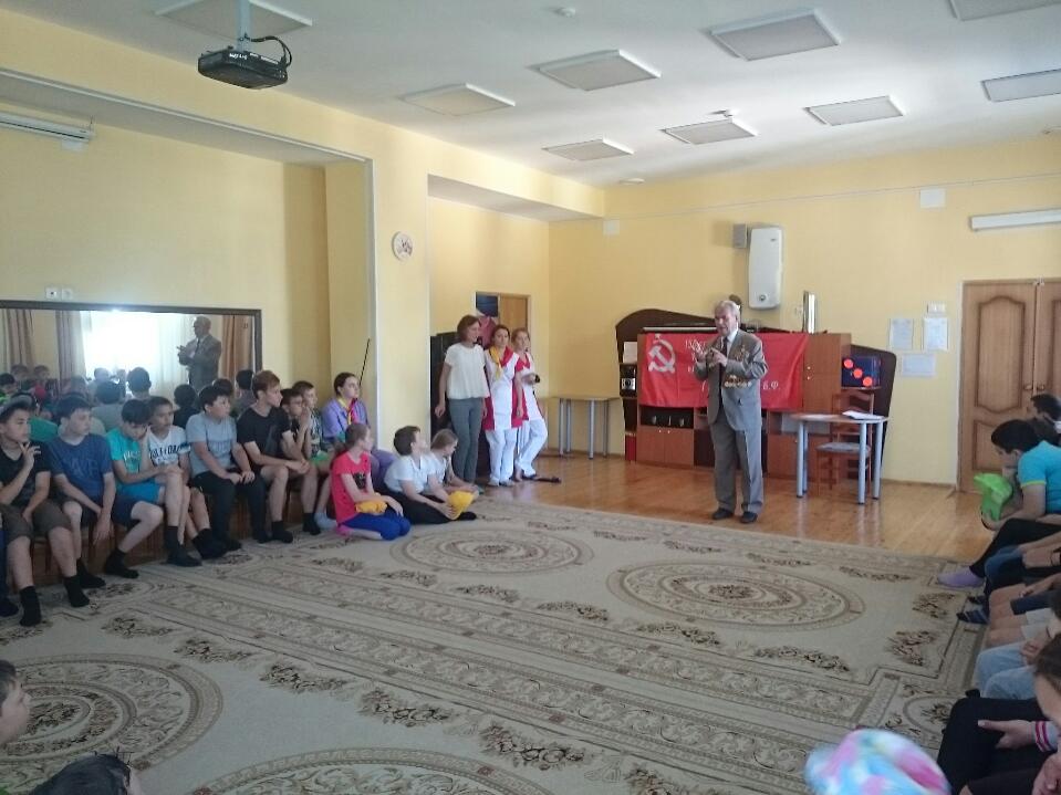 Студенты-волонтеры отряда "Палитра" направления «Начальное образование» Института педагогики БГПУ им. М. Акмуллы (Лилия Мурзина, Эльвина Фахретдинова Виктория Хамидуллина, Диана Акбутина, руководитель отряда – к.п.н., доц кафедры ТиМНО Е.А. Савельева),   которые проходят летнюю педагогическую практику в детском санатории «Дуслык»,  совместно с администрацией детского санатория «Дуслык» городского округа город Уфа Республики Башкортостан провели встречу с ветераном ВОВ, участником трудового фронта, ветераном почтовой связи  Андреем Васильевичем Ширяевым. Особенностью детского санатория «Дуслык» является то, что  лечение  детей тесно связано с воспитательно-образовательным процессом.