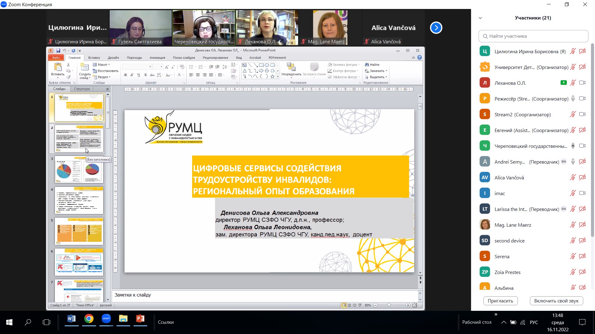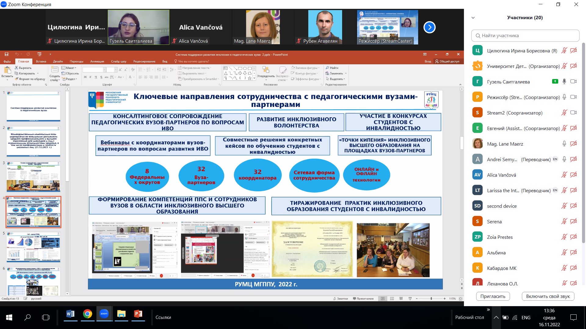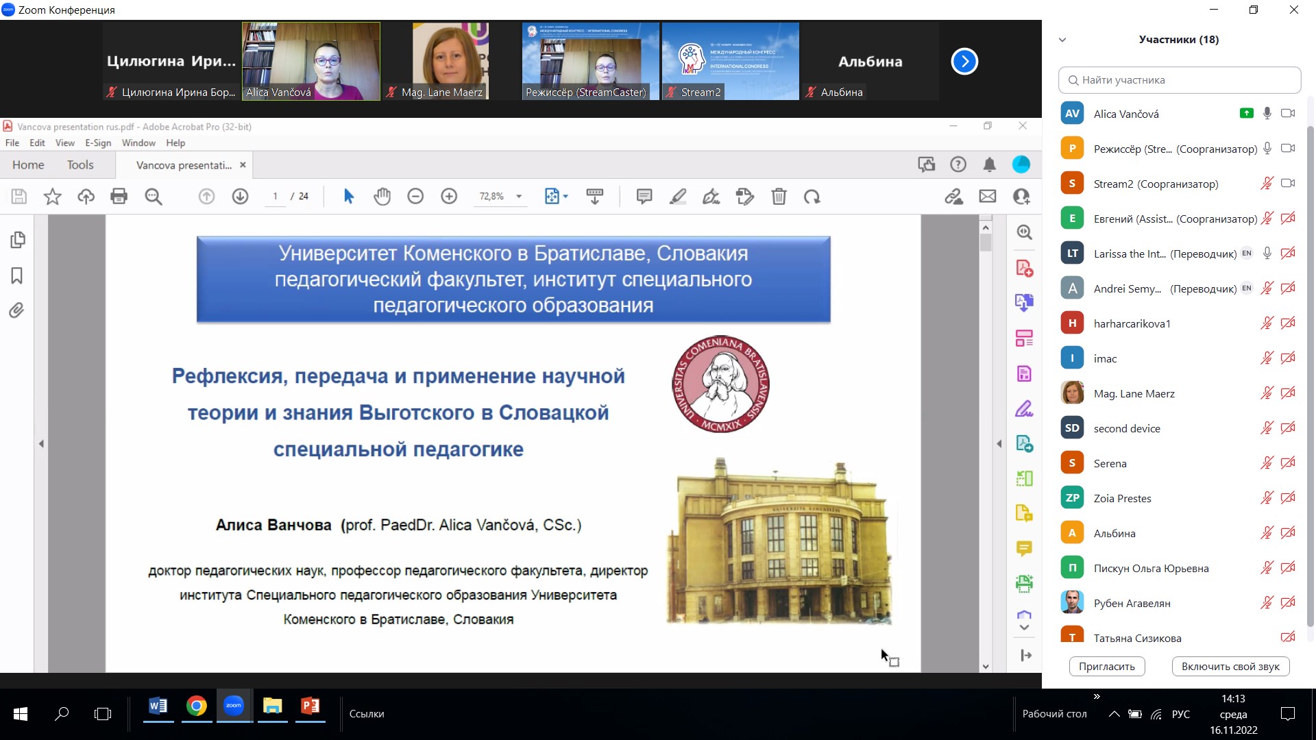 В рамках работы международной секции «Научная дипломатия Льва Выготского в мировом сообществе» (Россия, Австрия, Словакия) Ирина Борисовна выступила с докладом «Профессиональная подготовка будущих специалистов в области специального (дефектологического) образования».