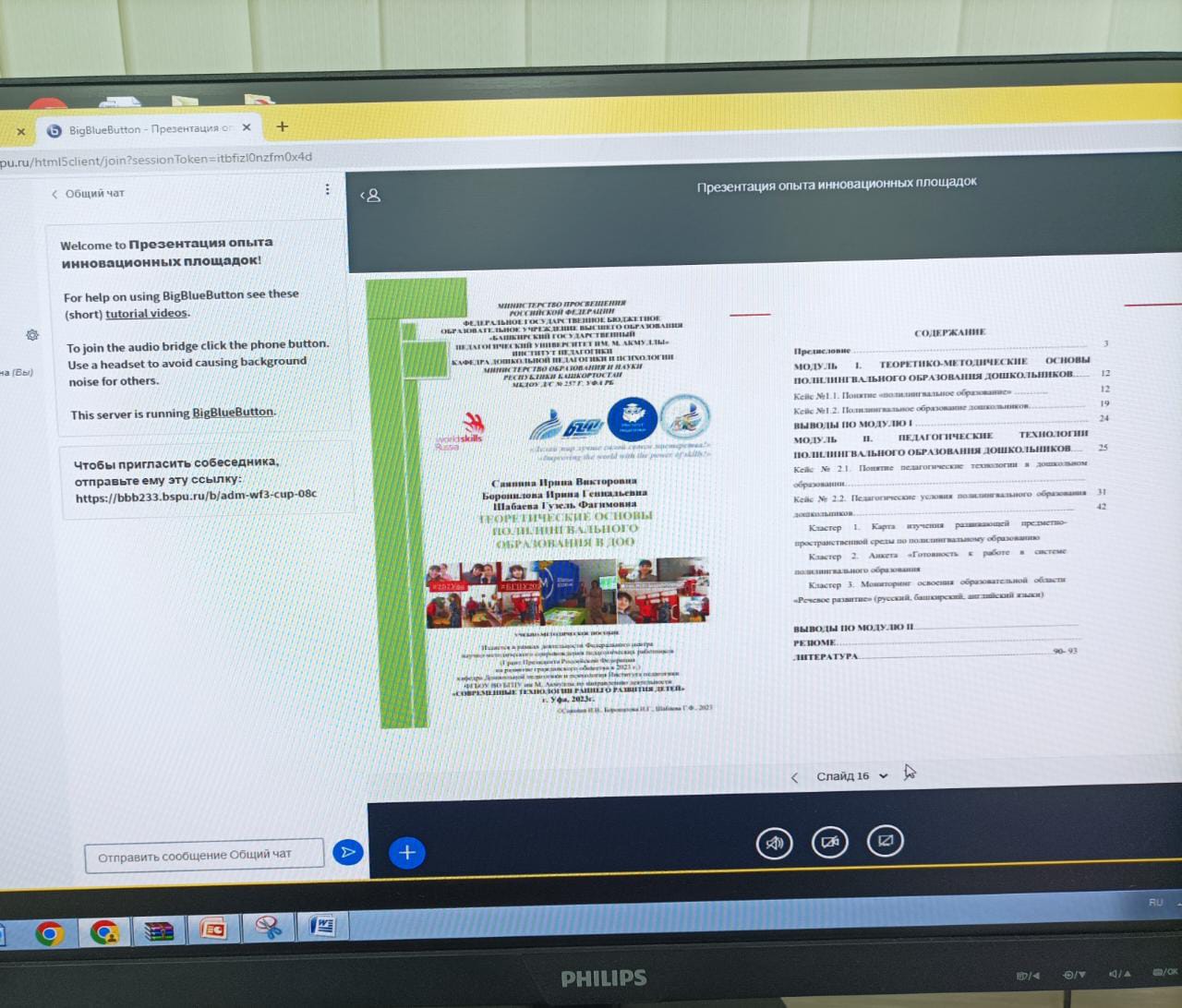 18.01.2023г. Боронилова И.Г., директор Института педагогики, к.п.н., доц.; Шабаева Г.Ф., к.п.н., доц. каф. ДПиП, Сыртланова Н.Ш. организовали и провели Интерактивный научно-методический семинар-коворкинг для студентов, магистрантов, педагогов инновационных площадок, ученых сетевых партнеров в рамках деятельности Федерального центра научно-методического сопровождения педагогических работников «От инновационной инфраструктуры к обновленному содержанию образования в контексте Года педагога и наставника»: презентация опыта инновационных площадок.