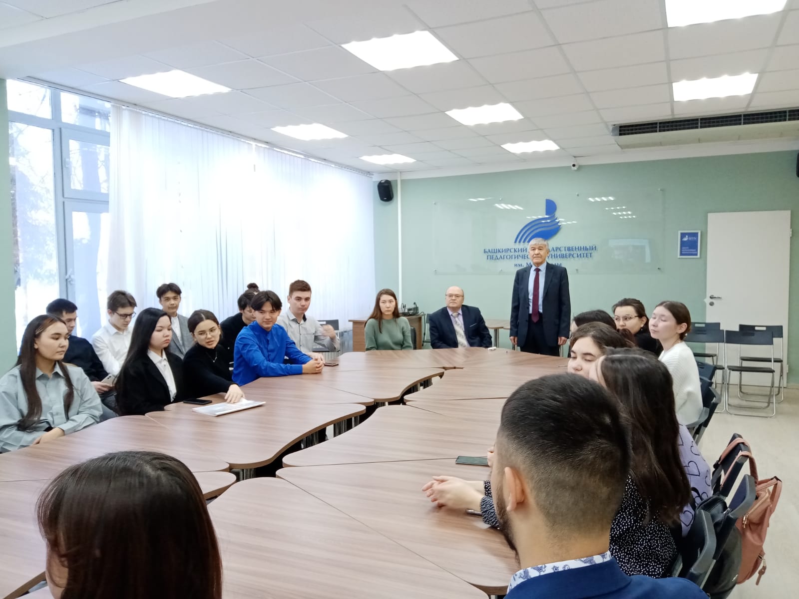 Мероприятие открыл Т.М. Аминов, обозначив значимость деятельности Рустема Гумеровича для науки, системы образования республики Башкортостан и педагогической деятельности в целом. Затем дискуссию продолжил Ильдар Нариманович Баишев, кандидат исторических наук, доцент кафедры Отечественной истории. Он познакомил студентов с жизнедеятельностью Р.Г. Кузеева, поделился воспоминаниями о нем. Раскрыл образ Рустема Гумеровича как учителя, педагога и наставника.
