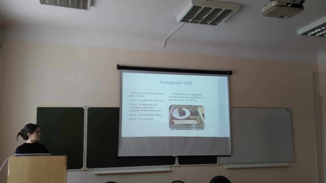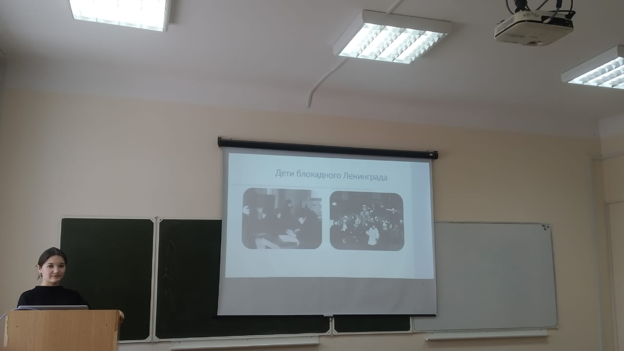 Особенно запомнился студентам второкурсникам рассказ Алины Фанзилевны о детях блокадного города и о том, как было организовано обучение в школах и ВУЗах. Учителя блокадного Ленинграда и их воспитанники вписали одну из самых героических и славных страниц в историю советской школы. В блокадные страшные дни они самоотверженным трудом в школе, на строительстве оборонительных сооружений, на полевых работах помогли отстоять Ленинград. За активное участие в обороне города свыше 5 тысяч школьников было награждено медалью «За оборону Ленинграда». Многие педагоги и работники школ были награждены орденами и медалями.