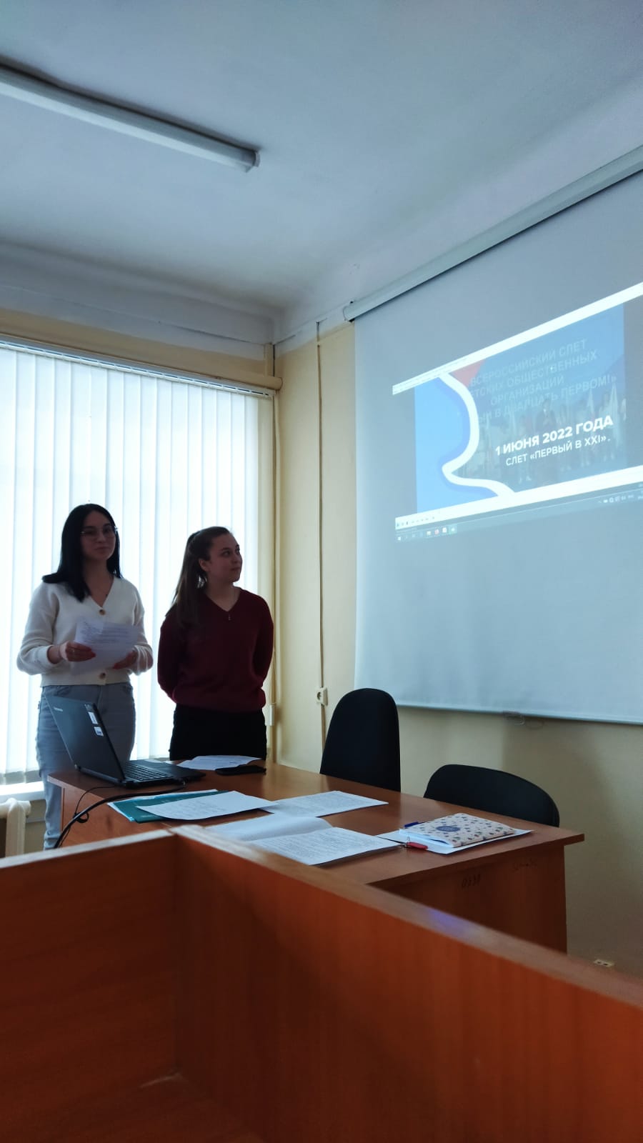30 января 2023 года на кафедре профессионального и социального образования повестка дня - увлекательная беседа на тему «Движение первых». Цель занятия: сформировать первоначальные представления о деятельности Российского движения детей и молодёжи «Движение первых».  Кураторский час кафедре был проведен со студентами 1 и 2 курсов направлений подготовки Психолого-педагогическое образование, профиль «Психология и социальна педагогика».