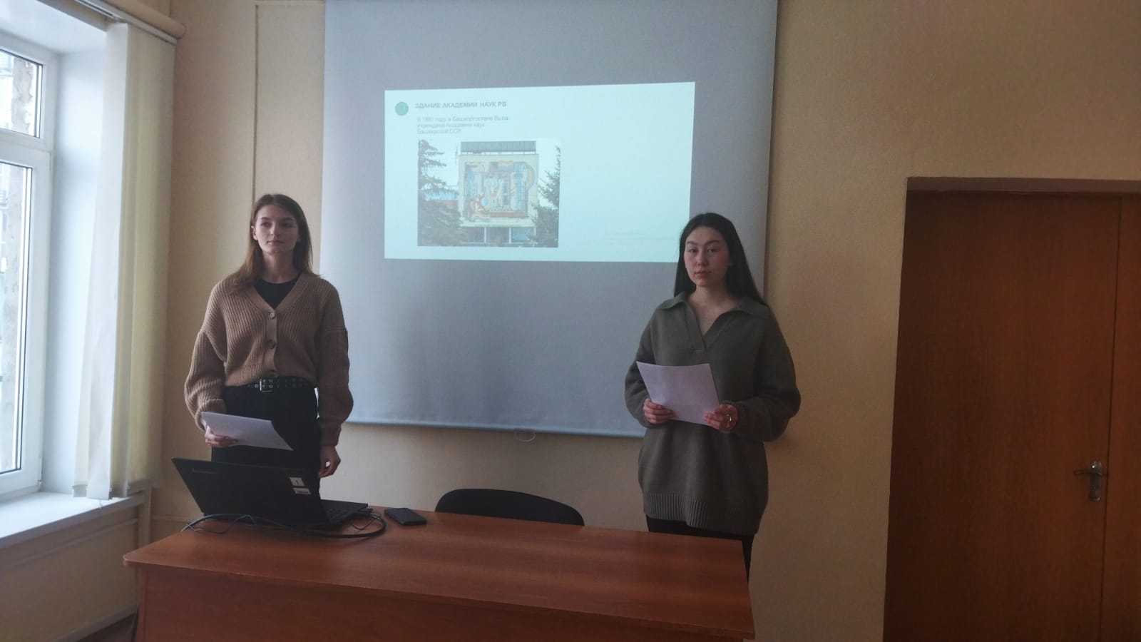 В ходе разговора студенты вспоминали, какие открытия наших ученых потрясли мир и рассуждали как на практике можно применять новые материалы и знания. На повестке дня были следующие достижения современных российский ученых: Андрей Гейм и Константин Новосёлов – открытие графена, Андрей Капица – озеро Восток, метан на Марсе, возобновляемость углеводородов, Игорь Курчатов – «мирный атом». Обсудили становление башкирской науки и её просветителей. Научные успехи в Башкортостане связаны с именами ученых Г.А. Толстикова (труды в области металлокомплексного катализа и органического синтеза), М.С. Юнусова (биоорганическая химия, антиаритмическое средство Аллапинин), В.Н. Одинокова, Ю.Б. Монакова, А.Ф. Леонтьева (теория функций комплексной переменной), В.В. Напалкова, Р.И. Нигматуллина и др.