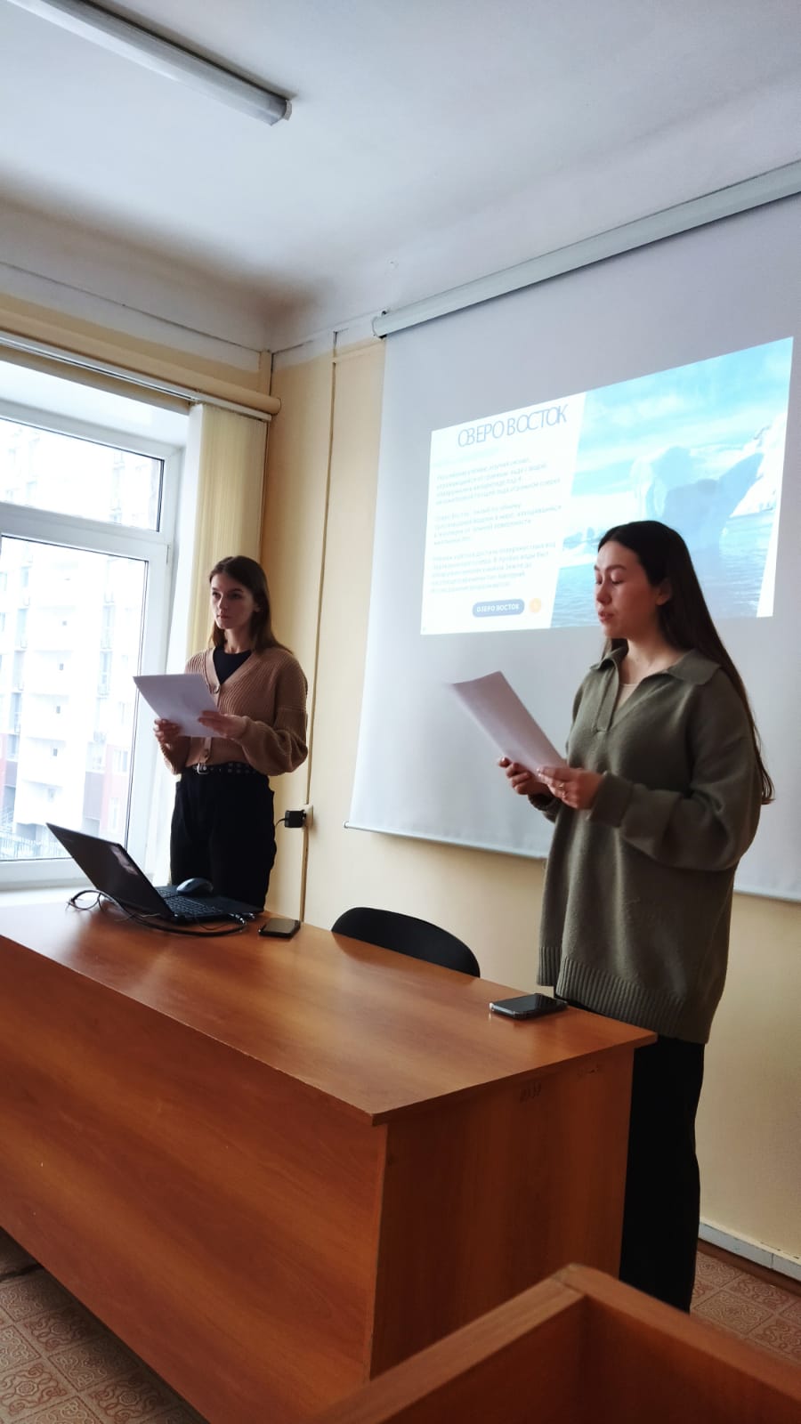 Об успехах российской научной деятельности за последние десятилетия рассказывали студентки 4 курса направления подготовки Социальная работа, профиль «Социальная защита и социальное обслуживание семей и детей», Иванова Анастасия и Лугаманова Ляйсан.
