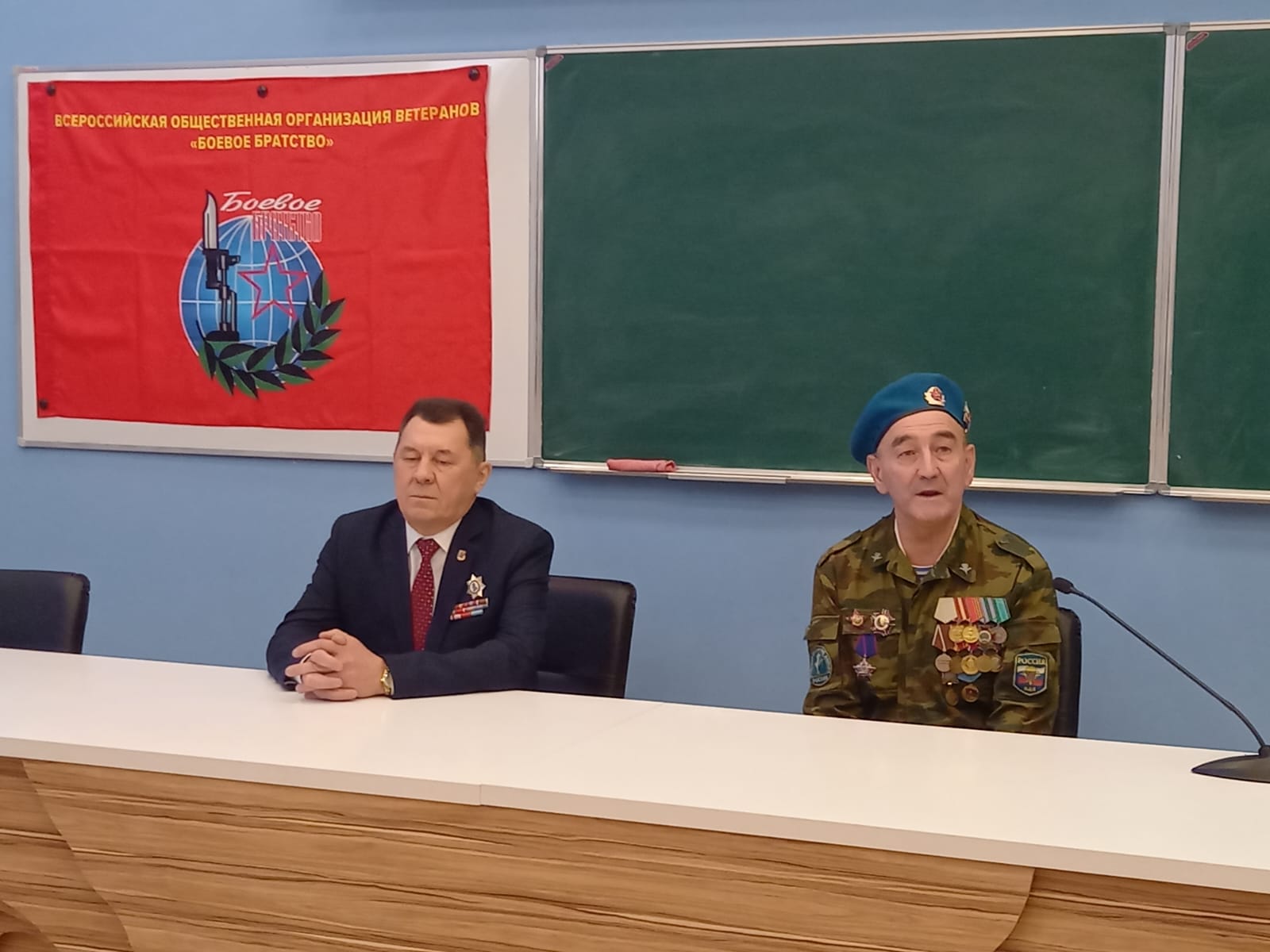 На встречу со студентами Башгоспедуниверситета пришли ветеран воздушно-десантных войск, председатель боевого братства по Октябрьскому району Гвардии рядовой Идрисов Ильдар Равилевич и ветеран боевых действий в Афганистане, председатель совета Башкирского республиканского отделения Всероссийской общественной организации ветеранов «Боевое братство» Тактаев Хайрат Рашитович. Они рассказали студентам о событиях тех лет, о боевом братстве, о солдатской смекалке, которая выручала их в трудные минуты, о ценности мира.