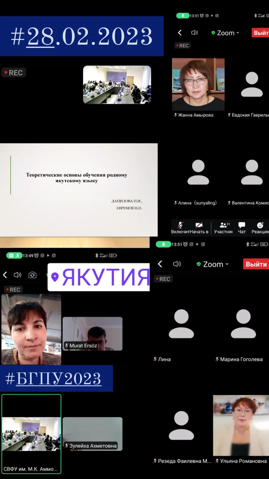 28.02.2023г. Шабаева Г.Ф. к п.н., доц. приняла участие с докладом на тему: "Технология подготовки студентов к речевому развитию детей в полилингвальной среде" в работе Всероссийского научно-методического семинара с международным участием «Теория и дидактика языкового образования в поликультурной образовательной среде», посвященного 75-летию профессора, доктора педагогических наук, члена-корреспондента АПиСН РФ Степана Константиновича Колодезникова. ФГАОУ ВО «СЕВЕРО-ВОСТОЧНЫЙ ФЕДЕРАЛЬНЫЙ УНИВЕРСИТЕТ им. М.К.АММОСОВА» ИНСТИТУТ ЯЗЫКОВ И КУЛЬТУРЫ НАРОДОВ СВ РФ КАФЕДРА МЕТОДИКИ ПРЕПОДАВАНИЯ ЯКУТСКОГО ЯЗЫКА, ЛИТЕРАТУРЫ И НАЦИОНАЛЬНОЙ КУЛЬТУРЫ.