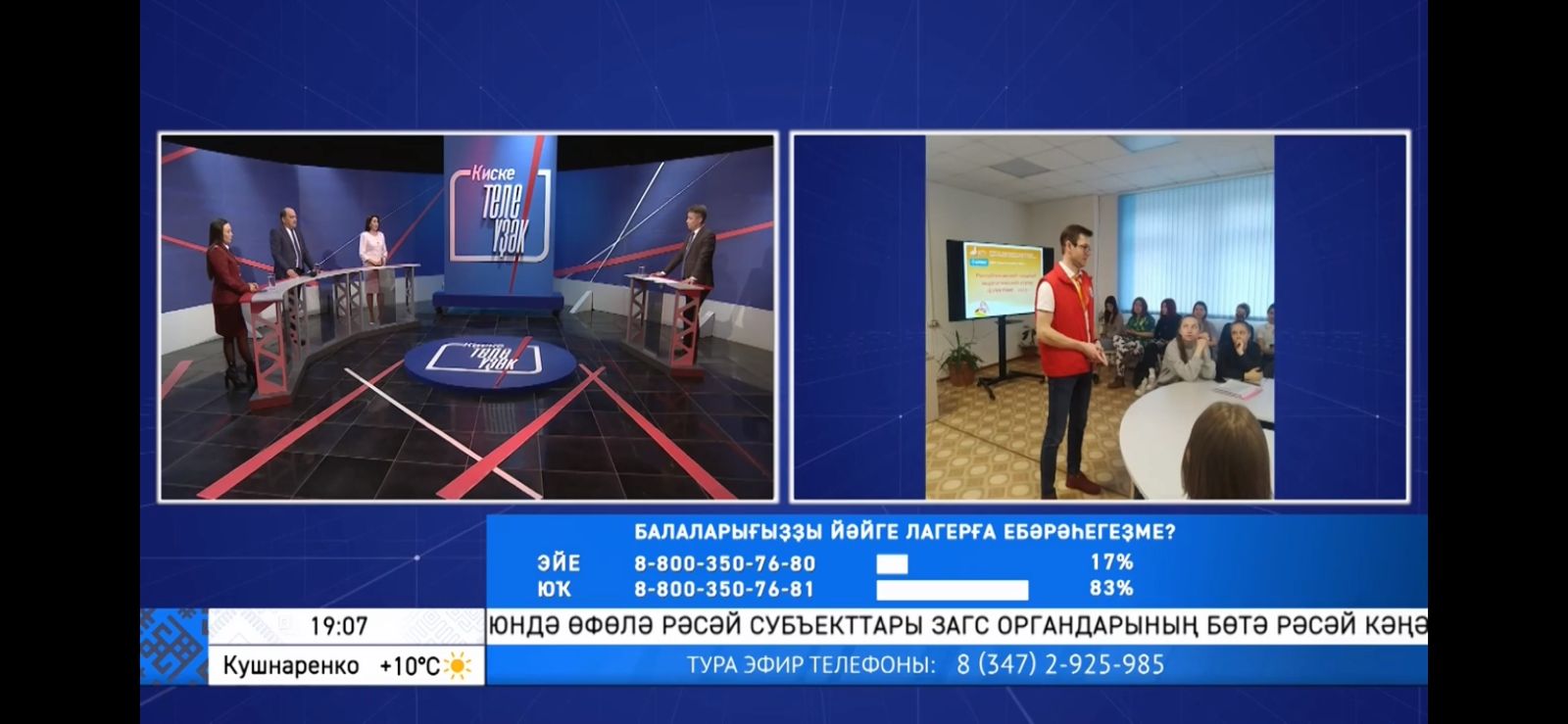 11 апреля 2023 года кандидат педагогических наук доцент кафедры педагогики Гумерова Фарида Фатхулловна приняла участие в телепередаче «Вечерний  Телецентр», посвящённой обсуждению вопросов летнего отдыха детей. Участники в прямом эфире отвечали на вопросы телеведущего и родителей относительно организации летних лагерей, подготовки вожатых к работе в лагерях. Гумерова Ф.Ф. рассказала о работе Центра подготовки вожатых им. Е.В. Поспеловой кафедры педагогики и о деятельности вожатых в летних лагерях, были продемонстрированы фотографии студентов во время работы в лагерях, в том числе в Международном лагере «Артек», Всероссийских лагерях «Океан», «Орленок».