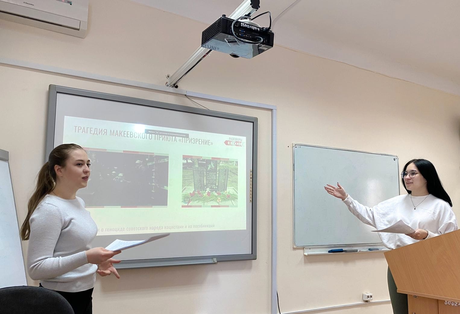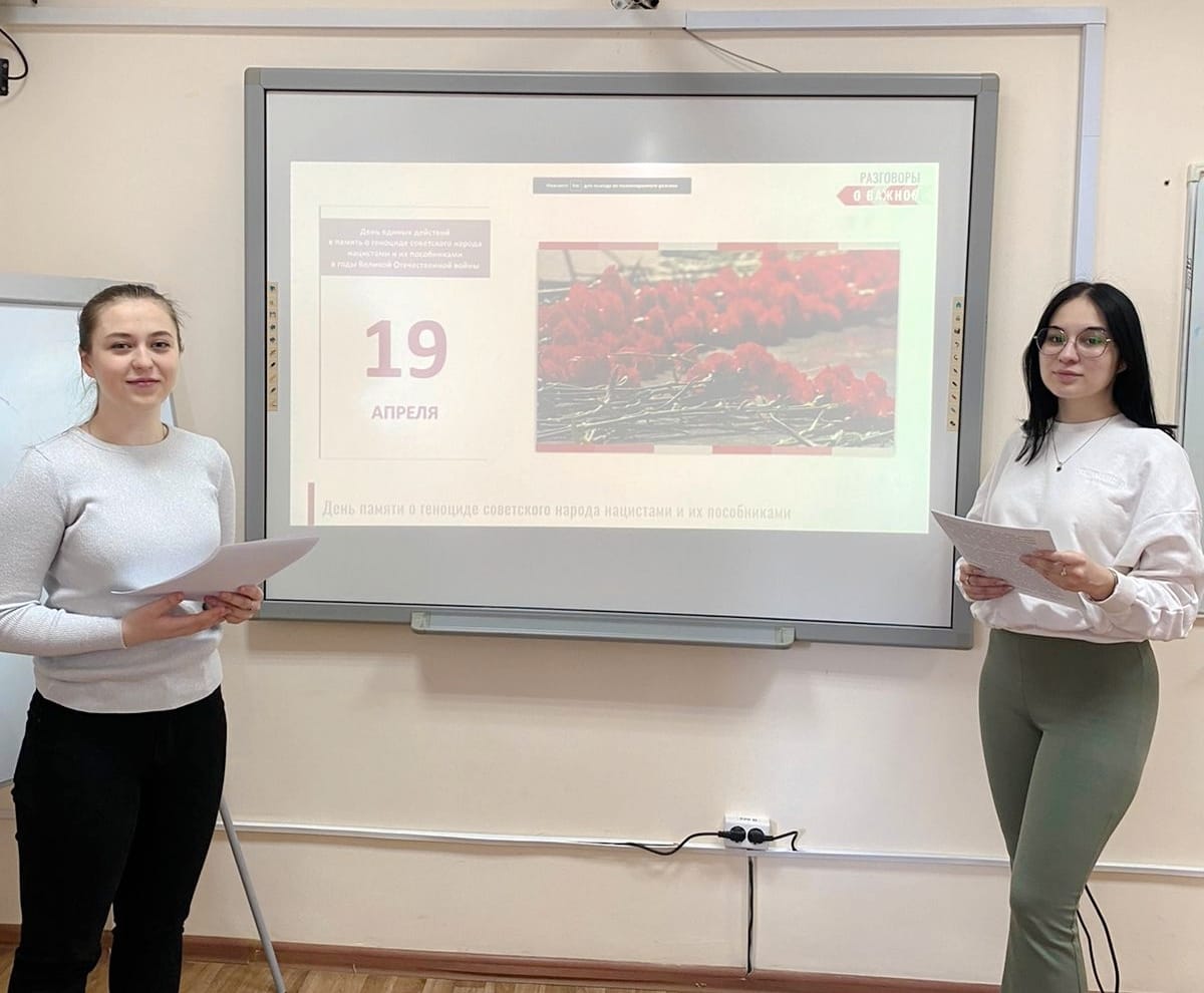 Цель беседы заключалась в формировании понимания необходимости сохранения исторической правды, памяти и преемственности поколений на примере истории геноцида мирных советских граждан со стороны нацистов и их пособников в годы Великой Отечественной войны 1941-1945 гг. Студенты познакомились с понятием "геноцид", фактами геноцида советского народа со стороны нацистов и их пособников в годы Великой Отечественной войны, а также с их морально-нравственной и исторической оценкой. Особый интерес студенты проявили в обсуждении вопроса об установке исторически значимых памятников и, в особенности, про мемориал на месте концлагеря "Красный". В завершении студенты смотрели ролик "Мы не забудем! Мы не допустим возрождение геноцида!".