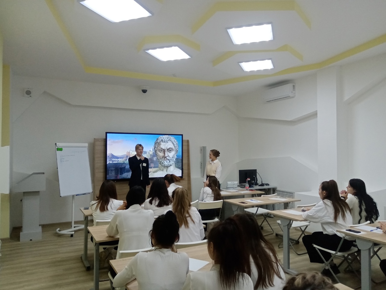 Пять финалистов показали демоурок в новых аудиториях кафедры педагогики, которые предназначены специально для демонстрационного экзамена.