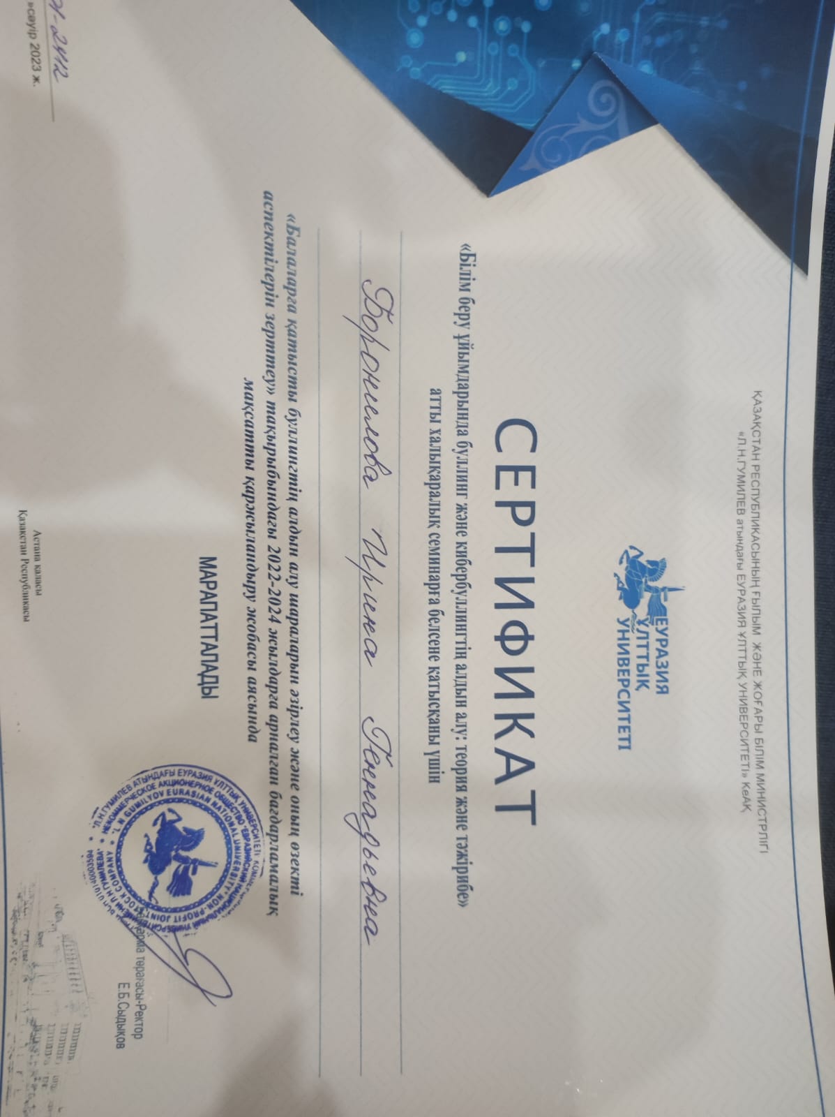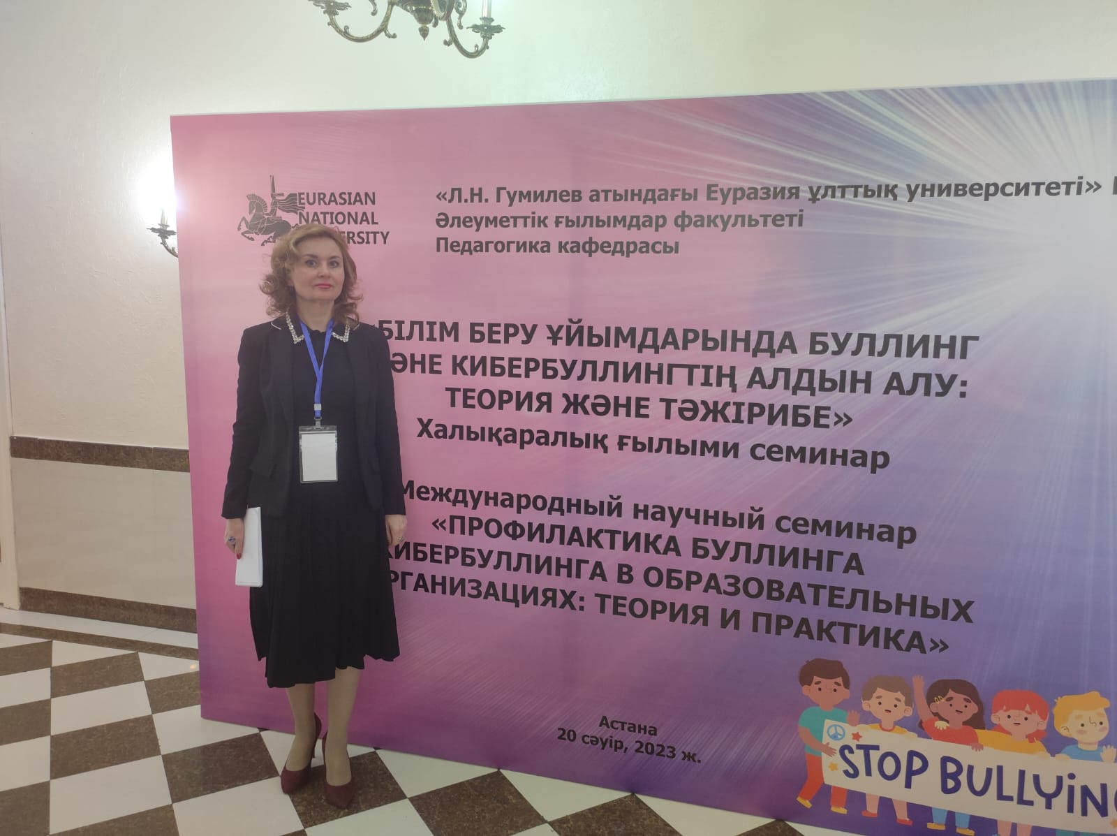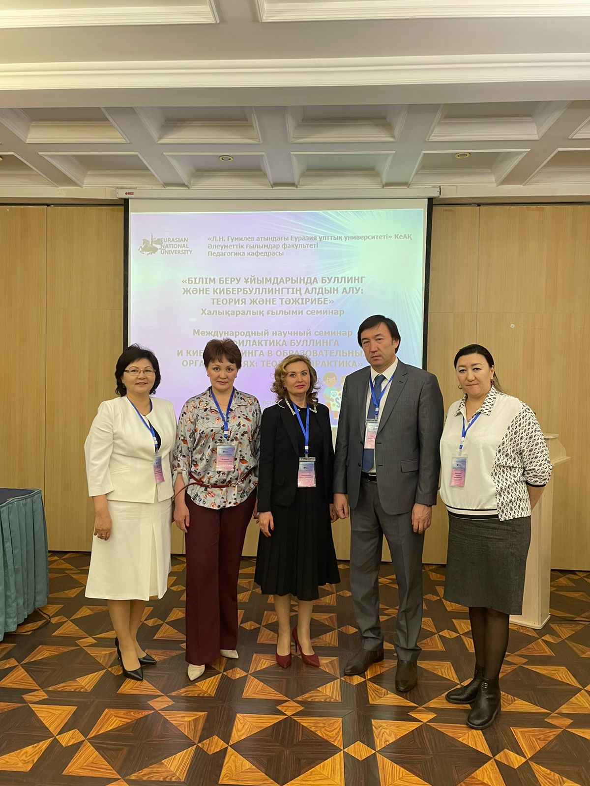 Директор института педагогики Боронилова И.Г. и декан факультета психологии Халикова Л.Р. приняли участие в работе  международного научного семинара на тему «Профилактика буллинга и кибербуллинга в образовательных организациях: Теория и практика», организованном Евразийским национальным университетом  им. Л.Н.  Гумилёва (Казахстан).