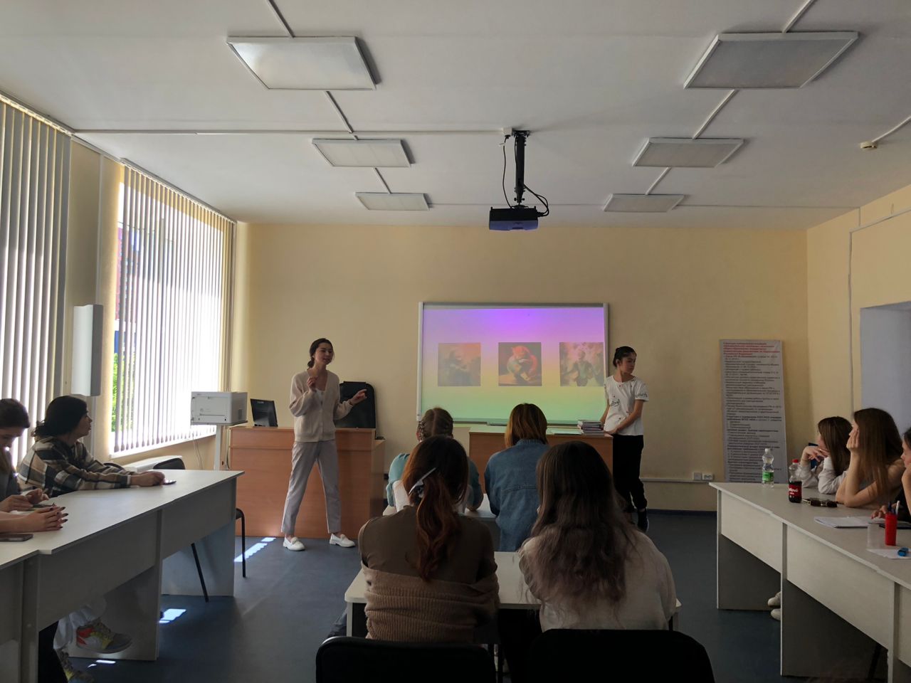 личном и общественном уровнях. Мероприятие включало просмотр видеоматериала, на основе которого была построена оценочная беседа «Когда мы ощущаем себя счастливыми?» По окончании дискуссии студентами были выполнены интерактивные задания.
