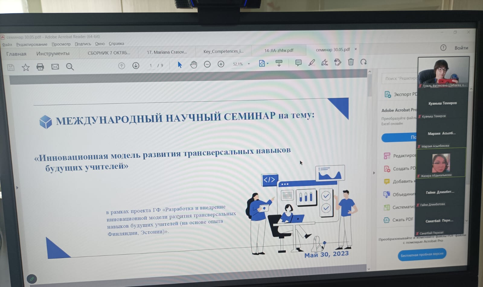 30 мая 2023 года в рамках проекта   грантового финансирования МНВО РК  на 2022-2024 годы на тему «Разработка и внедрение инновационной модели развития трансверсальных навыков будущих учителей (на основе опыта Финляндии, Эстонии)» состоялся  Международный научный семинар на тему «Инновационная модель развития трансверсальных навыков будущих учителей».