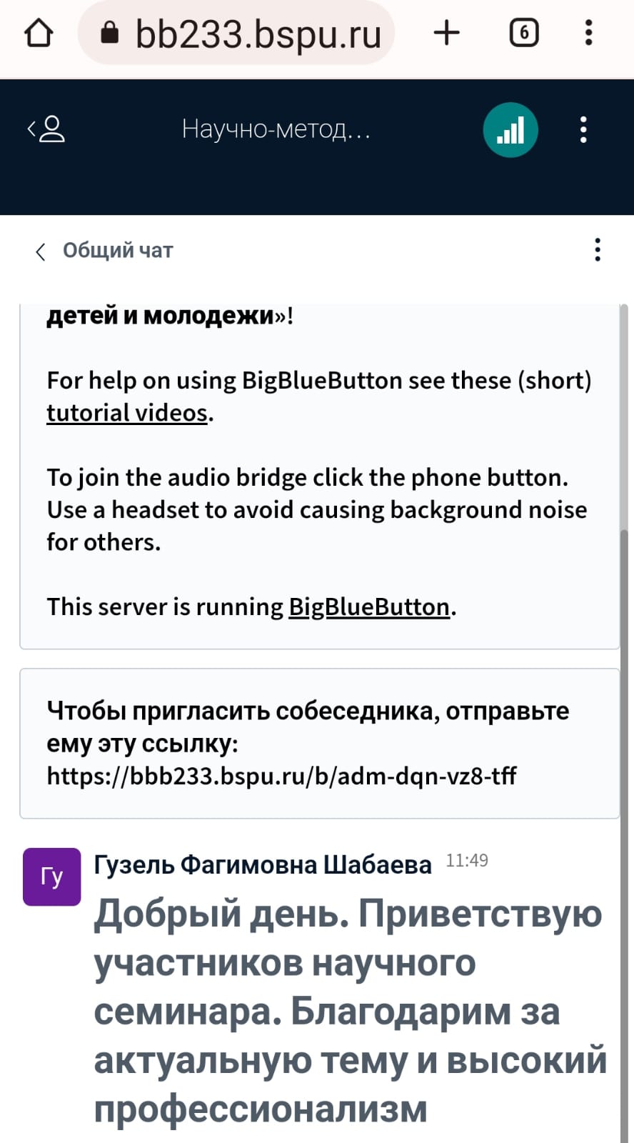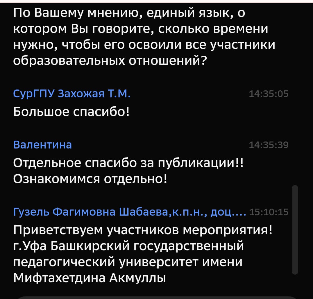 31 мая 2023 года Шабаева Г.Ф., к.п.н., доц., и.о. зав.каф.ДПиП Института педагогики БГПУ имени Мифтахетдина Акмуллы приняла участие в тринадцатой встрече методологического семинара Исследовательского Консорциума «Развитие личностного потенциала в образовании». Выступила с докладом "Современная подготовка студентов на базе мастерской проф мастерства и ЦРК, технопарка универсальных педагогических компетенций ВУЗа в условиях реализации проекта по современным технологиям раннего развития детей в полилингвальном и поликультурном пространстве детства. Тема встречи: «Роль обратной связи в развитии личностного потенциала учеников и учителей. Разбор кейсов проекта «Мастерские роста».
