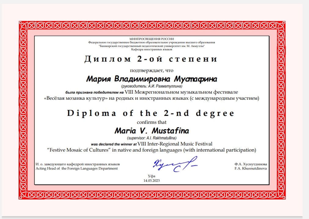 Студенты кафедры музыкального и хореографического образования стали Лауреатами VIII Международного музыкального фестиваля "Весёлая мозаика культур" на родных и иностранных языках (с международным участием).