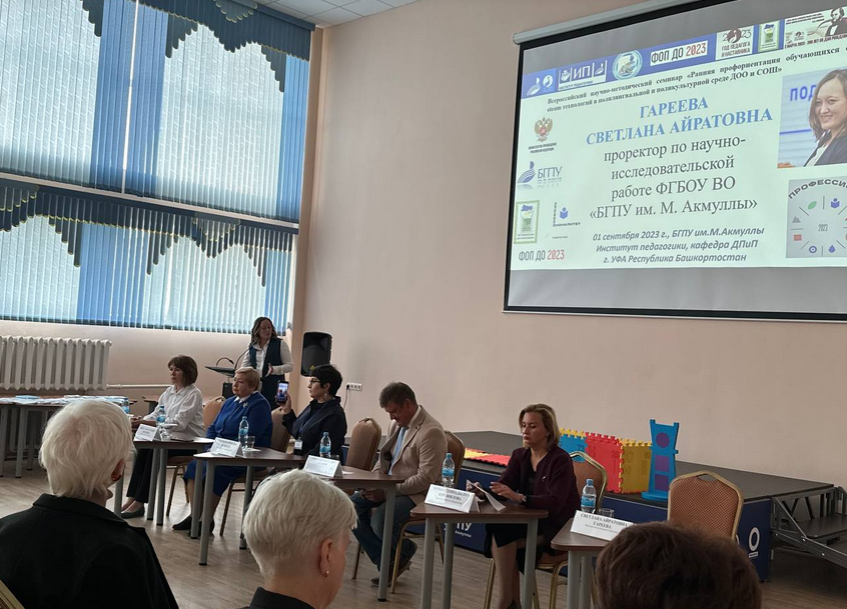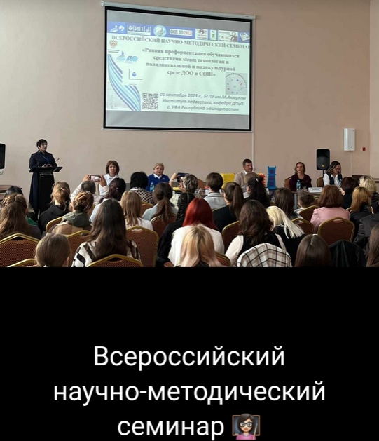 Всероссийский научно-методический семинар для студентов, магистрантов, аспирантов, преподавателей, педагогов инновационных площадок Института педагогики ДОО и СОШ на тему: «Ранняя профориентация обучающихся средствами steam технологий в полилингвальной и поликультурной среде ДОО и СОШ» проведен в рамках празднования: Года педагога и наставника, 200-летия со дня рождения К.Д. Ушинского в Российской Федерации, Года полезных дел для малой Родины, Года науки и просвещения Всемирного курултая башкир в Республике Башкортостан в условиях реализации проектов по современным технологиям раннего развития детей в полилингвальной и поликультурной среде; обобщение, транслирование передовых идей и технологий, эффективной и адресной методической поддержки педагогических кадров в вопросах применения интерактивного оборудования в познавательном развитии дошкольников в условиях реализации ФГОС ДО, ФОП ДО); организация образовательного процесса в формате практико-ориентированного подхода формирования профессионального мастерства по компетенции «Дошкольное воспитание», образовательный кластер «Профессионалитет».