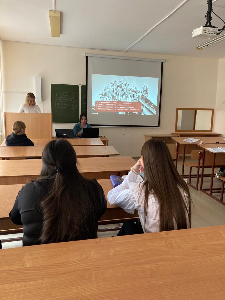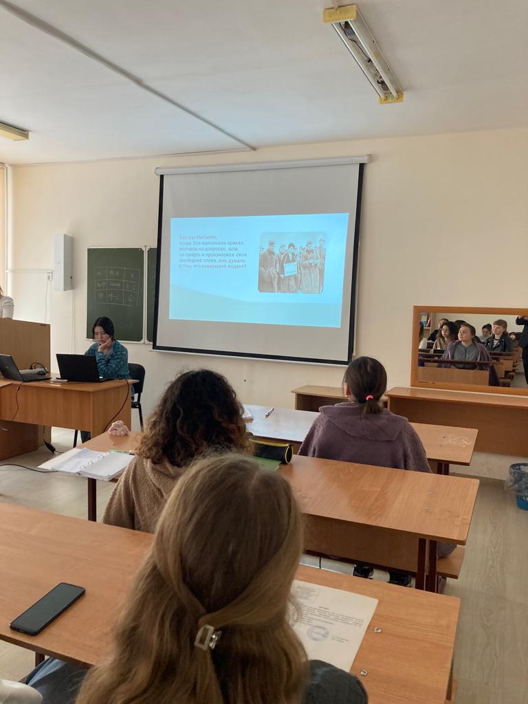 В процессе беседы студенты Нуриева Алсу и Такиуллина Марьям (гр. СОДД-41-20) под руководством куратора Сайтханова А.Ф. затронули вопросы патриотизма, подвига, самоотверженности, бескорыстного служения Родине и народу.