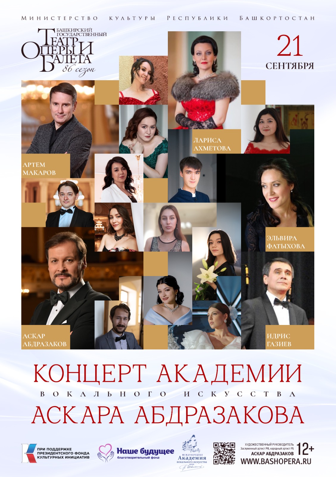 21 сентября в 19 часов в Башкирском государственном театре оперы и балета состоится отчетный концерт Академии вокального искусства Аскара Абдразакова.