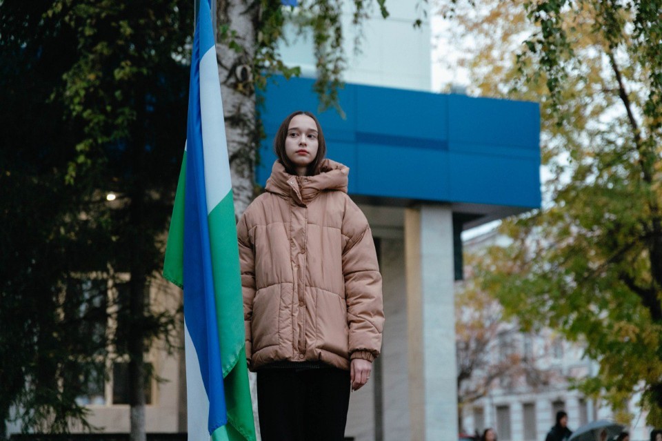 Почетное право поднять флаги получили студенты, показавшие высокий уровень знаний при поступлении в университет. Среди них была студентка 1 курса профиля "Художественное образование (хореография)" Софья Кудрявцева.
