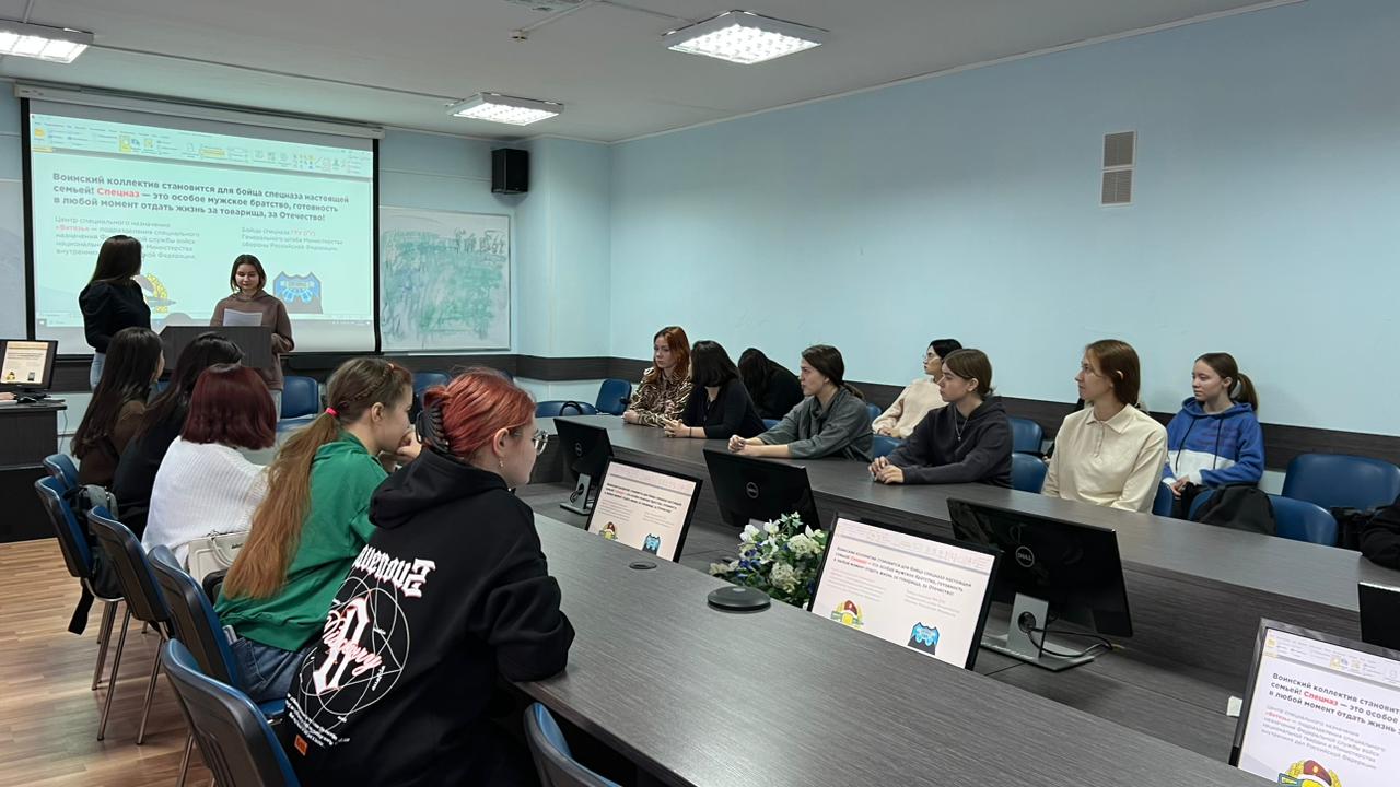 «Есть такая профессия – Родину защищать» именно с прекрасных этих слов из фильма «Офицеры» началось сегодняшнее мероприятие. Студентам рассказали о данной профессии, её особенностях и познакомили с легендами российского спецназа. Первокурсники рассуждали о том, какими качествами должны обладать военнослужащие войска специального назначения. Ими были названы такие важные характеристики, как дисциплинированность, организованность, ответственность, пунктуальность, самообладание, эмоциональная уравновешенность, выдержка, старательность. Далее студенты проверили себя на наблюдательность в ходе интерактивного задания.