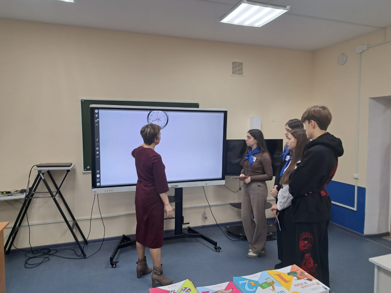 31 октября 2023 года в рамках осенней образовательной смены для детей из Луганской и Донецкой Народных Республик была организована профориентационная экскурсия для обучающихся в школах ЛНР и ДНР.  Профессорско-преподавательский состав и студенты кафедры теорий и методик начального образования ознакомили обучающихся образовательных учреждений со спецификой профессии учителя начальных классов, рассказали об активной творческой деятельности студентов и преподавателей кафедры ТиМНО, продемонстрировали работу интерактивного оборудования: сeнсе диска, электронного микроскопа, интерактивной доски, а также ответили на вопросы обучающихся.