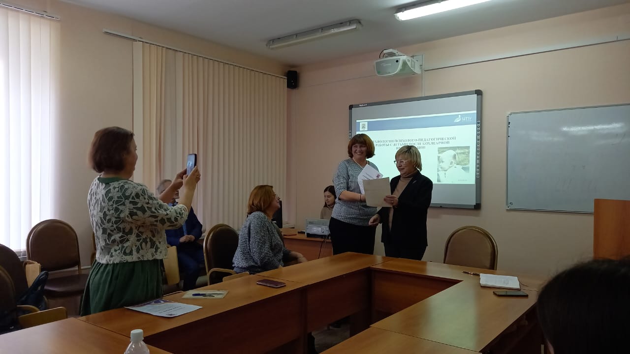 27 ноября 2023 года на кафедре специальной педагогики и психологии состоялся научно-методологический семинар «Технологии психолого-педагогической работы с детьми после кохлеарной имплантации» с участием ведущих сурдопедагогов Республики Башкортостан (учитель-дефектолог, сурдопедагог ГБУ РБ РЦППМСП Егорова М.А.; учитель-дефектолог МАОУ «Физико-математический лицей № 93» ГО г.Уфа РБ Полетаева Е.А.; учитель-дефектолог, сурдопедагог ГБДОУ Уфимский детский сад для детей с ОВЗ № 6 Разумова О.В.). Сурдопедагоги, преподаватели кафедры и студенты группы СОЛОГ-41-20 обсудили проблемы организации коррекционно-развивающей, реабилитационной работы по развитию слуха и речи у детей после кохлеарной имплантации, проблемы интегрированного обучения таких детей, методы, техники психолого-педагогической работы с детьми после кохлеарной имплантации. Латыпова Алсу, Иванова Наталья, Панькина Софья, Нуриева Алсу, Валиуллина Алина – студенты группы СОЛОГ-41-20 – подготовили содержательные выступления, раскрывающие определенные аспекты психолого-педагогической работы с детьми после кохлеарной имплантации. Научно-методологический семинар был организован и проведен д-ром мед. наук, профессором кафедры СПиП Фархутдиновой Луизой Валеевной.