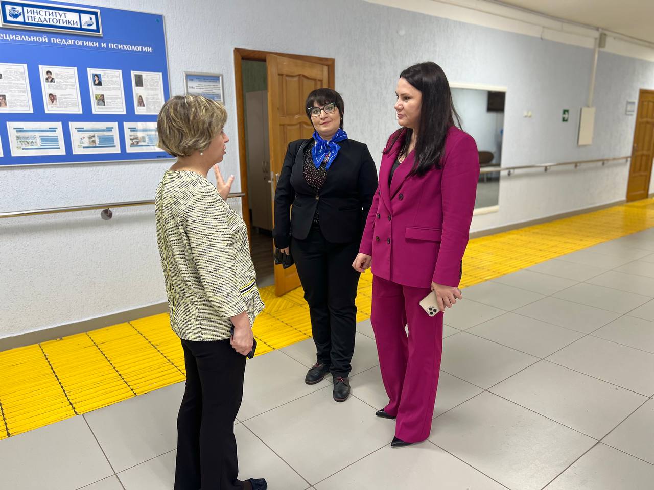 01 декабря 2023 года в рамках Международной научно-практической конференции «Традиции и инновации в национальных системах образования» состоялась встреча с Асылбековой Марзией Пазиловной, канд. пед. наук, доцентом, зав. кафедрой педагогики Евразийского национального университета им. Л.Н. Гумилева (Республика Казахстан), Абибулаевой Айжан Будановной, д-ром пед. наук, профессором Евразийского национального университета им Л.Н. Гумилева (Республика Казахстан), Толмачевой Верой Владимировной, деканом факультета психологии и педагогики, канд. пед. наук, доцентом БУ ВО «Сургутский государственный педагогический университет», во время которой зав.кафедрой специальной педагогики и психологии Цилюгина И.Б. презентовала гостям Центр развития компетенций «Мастерская специальных технологий инклюзивного образования», поделилась опытом подготовки специалистов в области специального (дефектологического) образования, представила научно-исследовательские проекты, учебно-методические пособия преподавателей кафедры. Во время последующего обсуждения, состоявшегося под руководством директора ИП Борониловой И.Г., были определены точки совместного развития и взаимодействия.