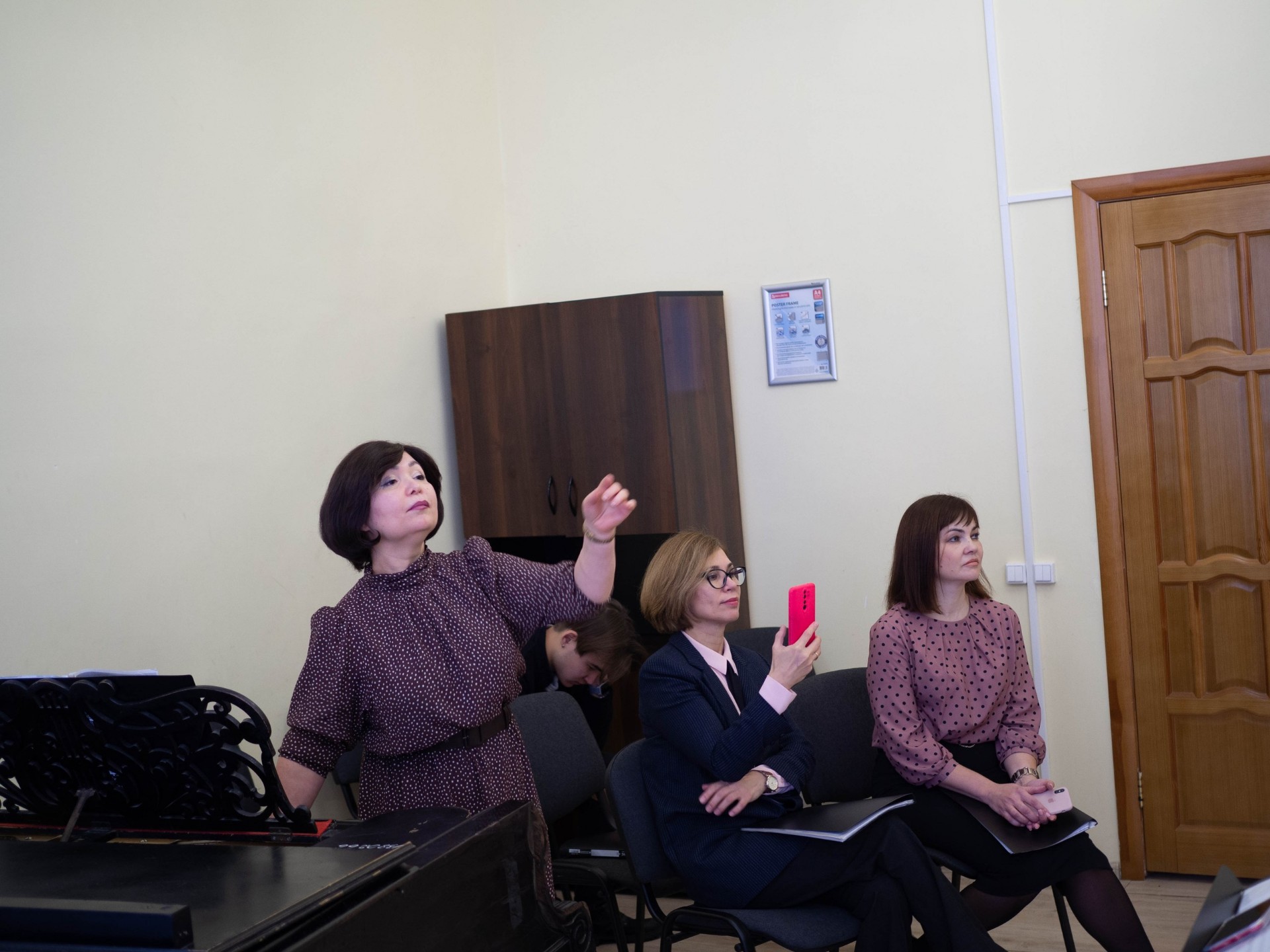 На занятии присутствовали гость кафедры Ирина Наильевна Хазеева канд. пед. наук, доцент кафедры музыкального образования ФГБОУ ВО «Нижневартовский государственный университет», заведующий кафедрой музыкального и хореографического образования БГПУ им.М.Акмуллы Татьяна Ивановна Политаева.