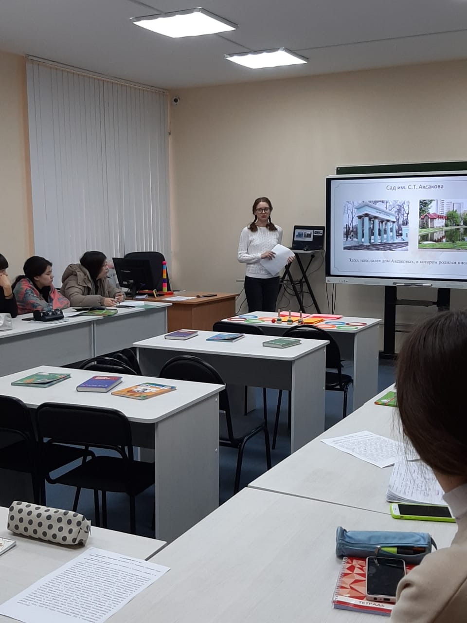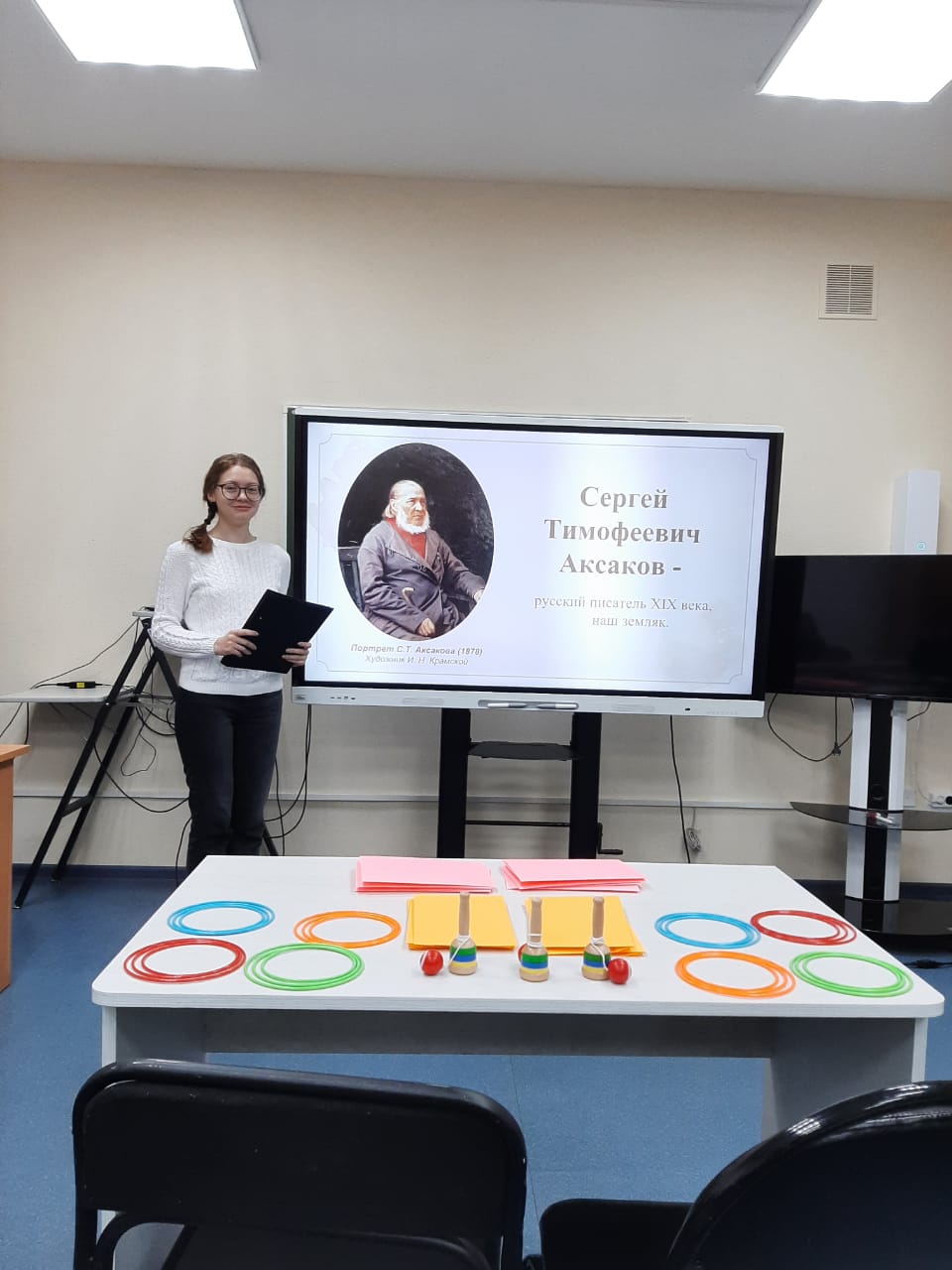 В день дублера 5 декабря 2023 г. студентка 2 курса Елена Леонидова провела практическое занятие в форме заочной экскурсии для студентов первого курса, обучающихся по направлению Начальное образование и математика (научный руководитель – к.ф.н., доц. Ю.А. Жукова). На занятии студенты познакомились с  аксаковскими местами в г. Уфе, совершили виртуальную экскурсию в Мемориальный дом-музей С.Т. Аксакова и узнали в какой атмосфере формировался художественный дар писателя.