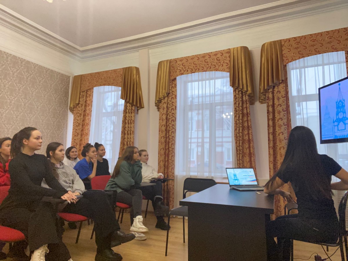 11 декабря 2023 года на кафедре музыкального и хореографического образования состоялась беседа со студентами 1 курса профиля "Художественное образование (хореография)" в рамках тематического плана занятий "Разговоры о важном" на тему "Главный закон страны" под руководством куратора старшего преподавателя кафедры Муфтахутдиновой Ирины Александровны.