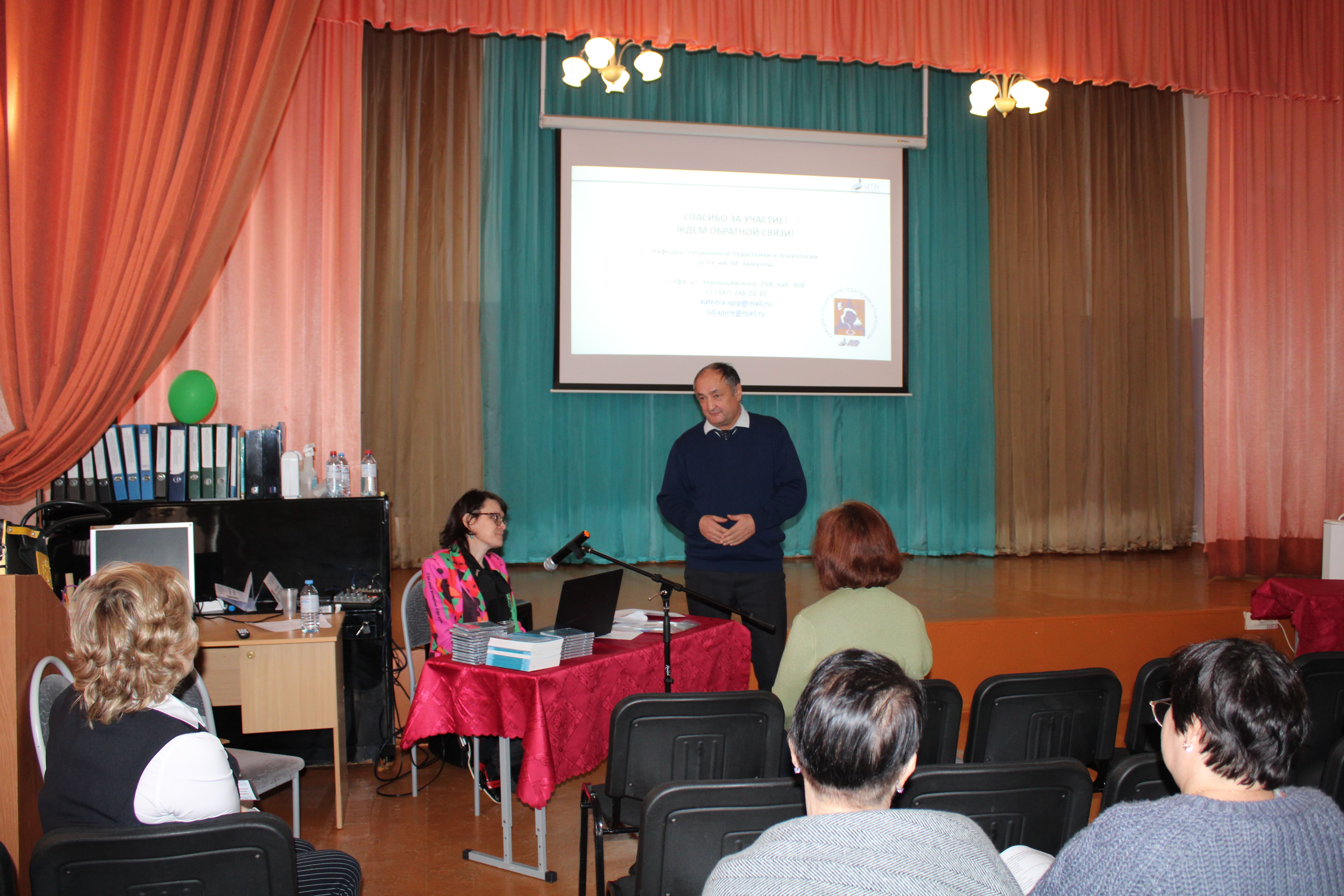 14 декабря 2023 года в Уфимской коррекционной-школе-интернате № 59 для обучающихся с ОВЗ состоялся республиканский семинар для учителей биологии коррекционных школ и школ-интернатов. Программа включала знакомство со школой, ее направления деятельности, в том числе, в области профессионального образования обучающихся с интеллектуальными нарушениями, открытые уроки по биологии с использованием 3D- и 2D-графики при формировании у обучающихся естествоведческих знаний, внеурочные занятия с группой обучающихся с синдромом Дауна объединения «Солнечный садовник» на тему «Зеленый огород на подоконнике», урок по дисциплине «Мир природы и человека» на тему «Тело человека», психокоррекционное занятие на тему «Развитие обоняния».