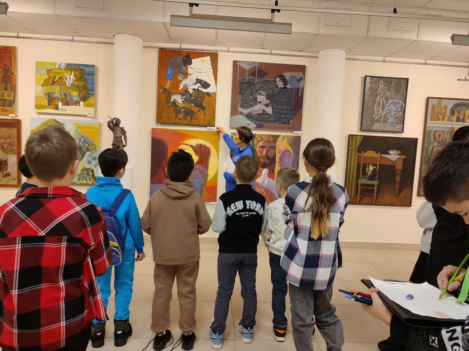 23 декабря 2023 года для учеников 3 и 7 классов уфимской Гимназии № 64   доцент кафедры ТиМНО БГПУ им М. Акмуллы Савельева Е.А., в рамках работы инновационной площадки по теме  «Развитие творческой активности обучающихся младшего и среднего школьного возраста средствами дидактических игровых материалов в поликультурном пространстве общеобразовательной школы», провела мастер-класс  в Уфимской художественной галерее, где проходит выставка творческих работ художников  Башкортостана "Многоцветье традиций".