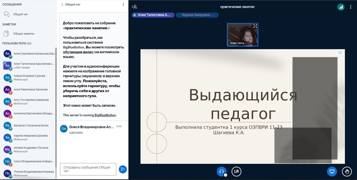 В рамках празднования Дня  науки доценты кафедры педагогики Арасланова А.Т. и Султанова Л.Ф. провели воркшоп "Научный путь любимого педагога" в группе ОЗПВРИ 11-23. Студенты активно участвовали , презентовали свои исследования в области  творчества и научного наследия педагогов прошлого и современности